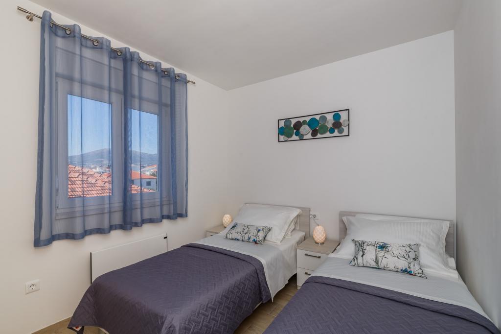 Novi, popolnoma opremljeni apartmaji, ki se nahajajo v najlepšem delu Kaštela, v Kaštel Starem med Splitom in Trogirjem. Od plaže in obalne promenade so oddaljeni 70 metrov. Čudoviti balkoni s pogledom na morje ponujajo osvežitev v poletnih večerih. Parkirišče, žar, popolnoma opremljena kuhinja, sušilec za lase, wi-fi, klimatska naprava, pametna TV, Netflix. Blizu centra in vseh ugodnosti. Apartma se nahaja v drugem nadstropju družinske hiše.