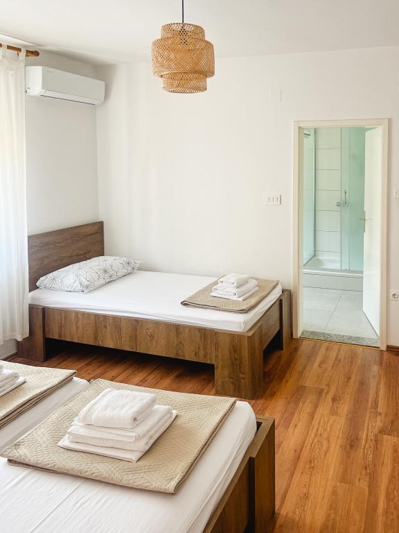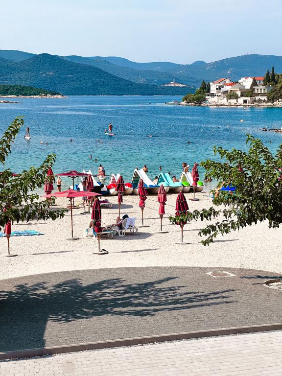 Ena najboljših namestitev, ki smo jih imeli na Hrvaškem. Gostitelji so zelo prijetni in ustrežljivi. Apartmaji so lepi s pogledom na morje. Parkirišče na dvorišču hiše (bili smo trije, 6 odraslih + 9 otrok). Velika senčna pergola s kaminom za peko na žaru in kuhanje na prostem. Zraven je tudi umivalnik z vodo iz pipe, sobe so popolnoma opremljene s posteljnino, brisačami, posodo, pomivalnim strojem, pralnim strojem, aparatom za kavo. Tik ob in pod hišo sta dve restavraciji, iz katerih lahko hrano odnesemo v apartma. Ob hiši na dvorišču je tudi prostor za shranjevanje ležalnikov in napihljivih senčnikov. Res odlična nastanitev za družino z otroki, ki lahko sami hodijo 50 metrov do plaže.