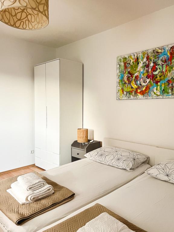 Odličen kraj za družine z otroki. Plaža, restavracije, trgovine in druge zanimivosti so na dosegu roke. Čisto. S terase pogled na morje. Glavna stvar - fantastični gostitelji. Hvala Zerini in Stjepanu za odlične počitnice, okusno večerjo in izlet z ladjo. Agata in Krysian z otroki. Kietrz