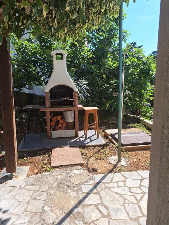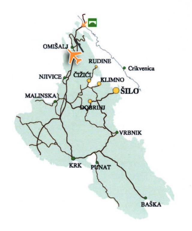 Plaža in kamp z restavracijo, trgovino in beach barom sta oddaljena 250 m, še ena trgovina, kavarna in 2 restavraciji pa sta oddaljeni 600 m v centru mesta, v zalivu pa je tudi slaščičarna, pekarna, kavarne in več restavracij. Malinska je oddaljena 12 km in ima vse ugodnosti, kot so restavracije, bari, lekarne, bencinska črpalka, supermarketi, diskoteka, hoteli, avtobusna postaja, smučanje na vodi. Letališče Rijeka je oddaljeno 14 km.