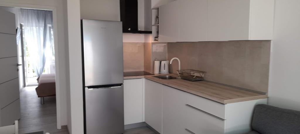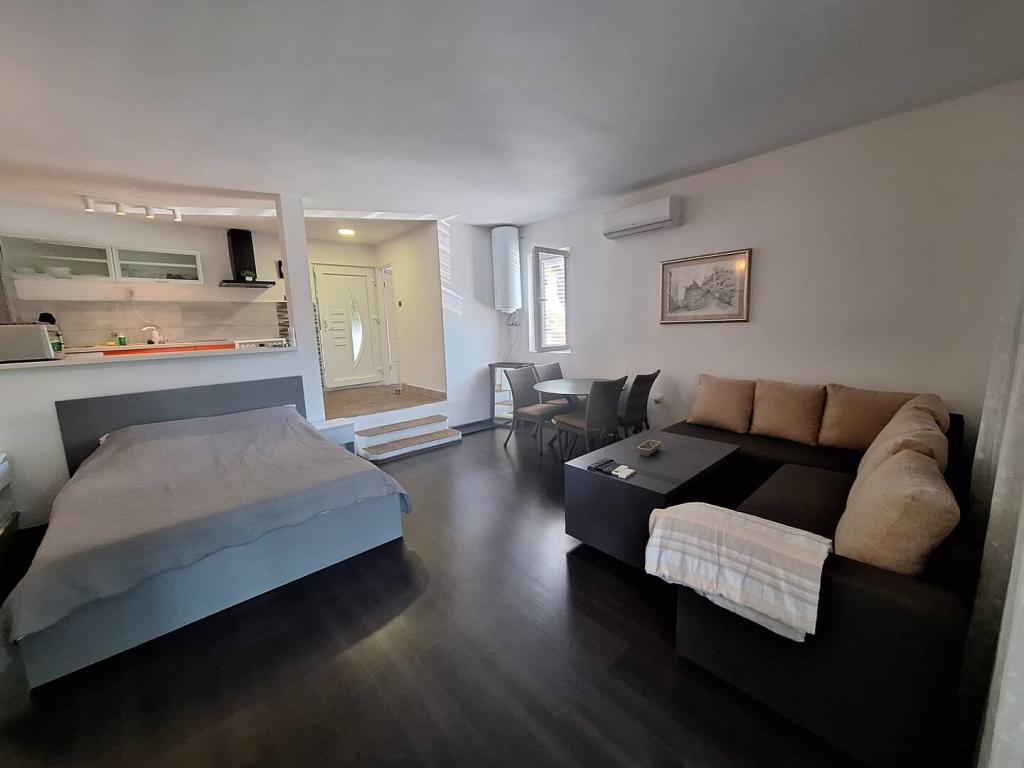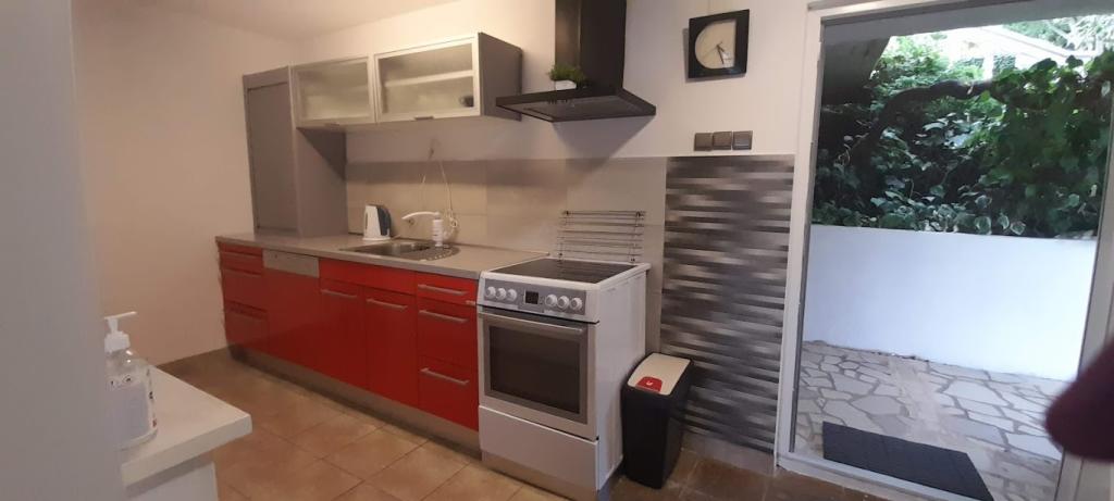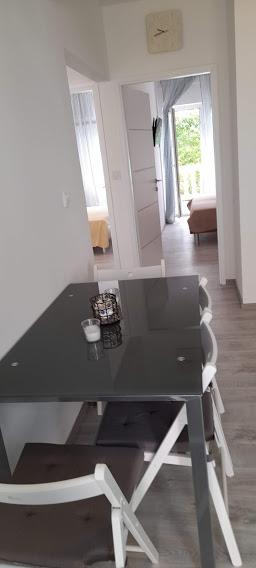 Našo hišo v Klimnu v zalivu Soline, znanem po zdravilnem blatu in jami Biserjuka, sestavljata studio apartma za 2 osebi v pritličju z 20m2 veliko teraso in apartma v 1. nadstropju z ločenim vhodom in 2 terasama za 4 osebe s 3 zvezdicami na mirni lokaciji obdani z naravo. Imamo vrt z žarom na drva, ki ga lahko uporabljate brezplačno in zunanjim tušem. Od morja smo oddaljeni 250 m. Velik apartma ima predsobo, kopalnico z veliko tuš kabino, 2 spalnici, vsaka s TV, klimo in izhodom na teraso z mizo in stoli za sedenje ter ležalniki, kuhinjo z dnevno sobo z izhodom na drugo teraso s sedežno garnituro. Studio apartma velikosti 50m2 ima majhno kopalnico in teraso z mizo in stoli ter ležalnikom. Kuhinje v obeh apartmajih imajo hladilnik, zamrzovalnik, mikrovalovno pečico, steklokeramično kuhalno ploščo, napo, opekač kruha, kuhalnik vode, aparat za kavo, ves jedilni pribor in sušilec za lase. WIFI je brezplačen. Hišni ljubljenčki na zahtevo. Brezplačna uporaba posteljnine, brisač, klimatske naprave.