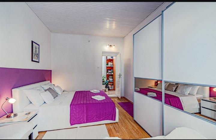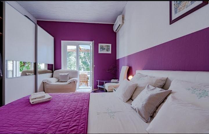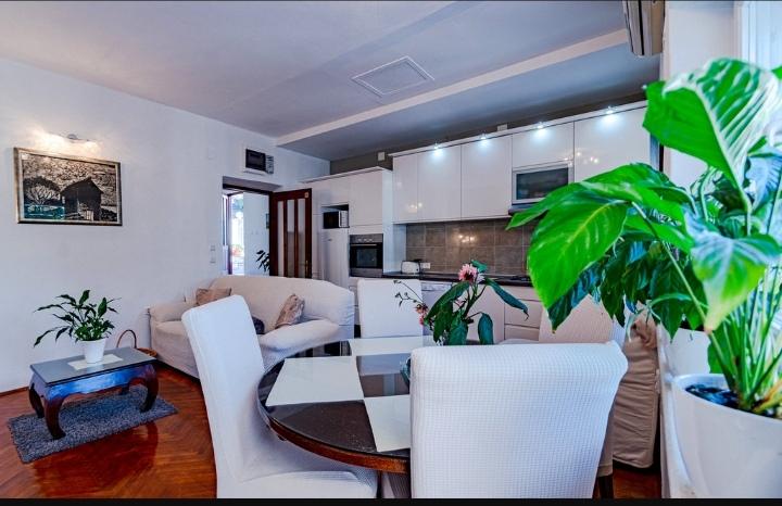 Luksuzno in popolnoma opremljen apartma za 4 osebe se nahaja tik ob plaži in sprehajališču. Staro mesto se nahaja sedem minut od apartmaja. Apartma ima teraso s pogledom na morje. Apartma se nahaja v prvi vrsti do morja in je v bližini vseh udobja ter dovolj daleč, da se izogne hrupu s ceste. Stanovanje je primerno za štiri osebe, parkirno mesto pa je zagotovljeno v lokalni garaži, ki se nahaja nekaj minut od stanovanja. Apartma ima 68 m2 in je primeren za 4 osebe.