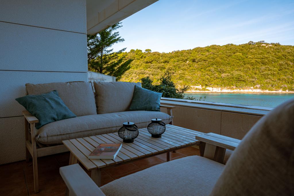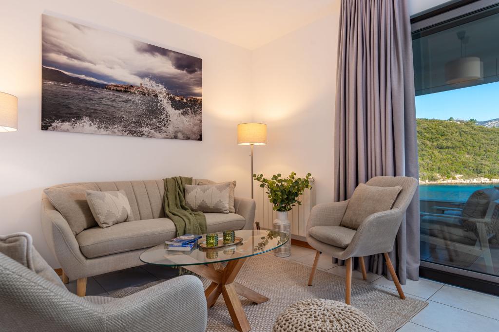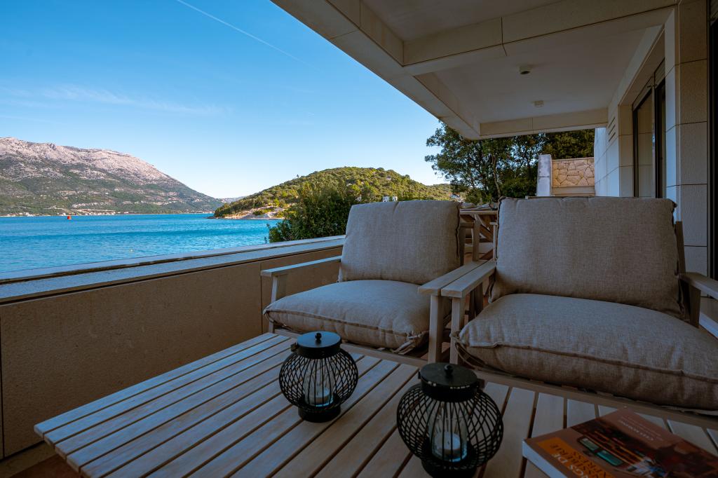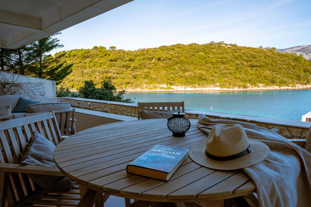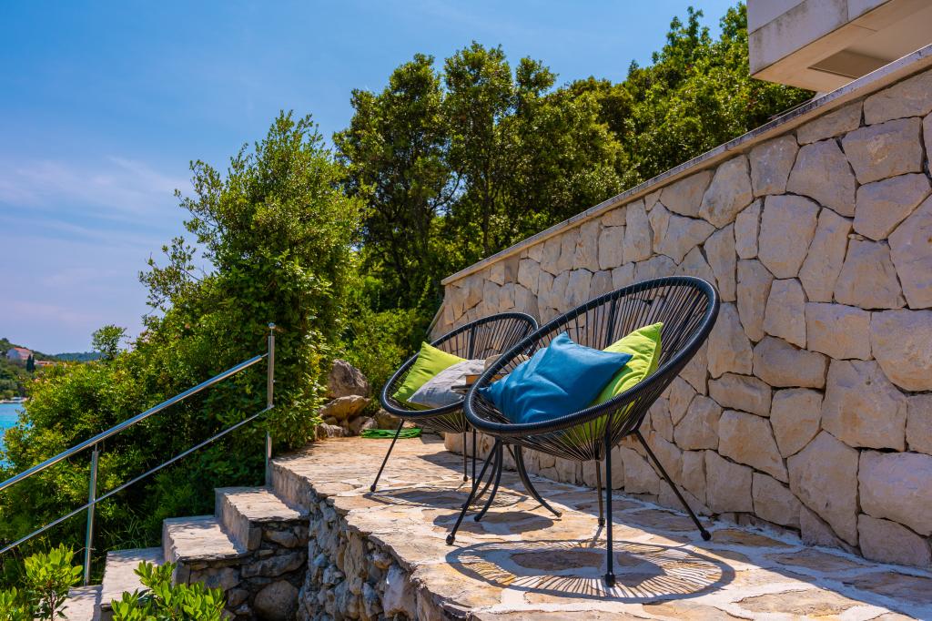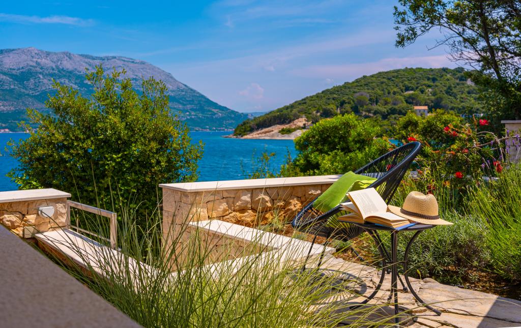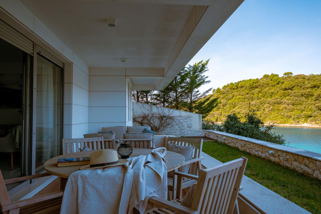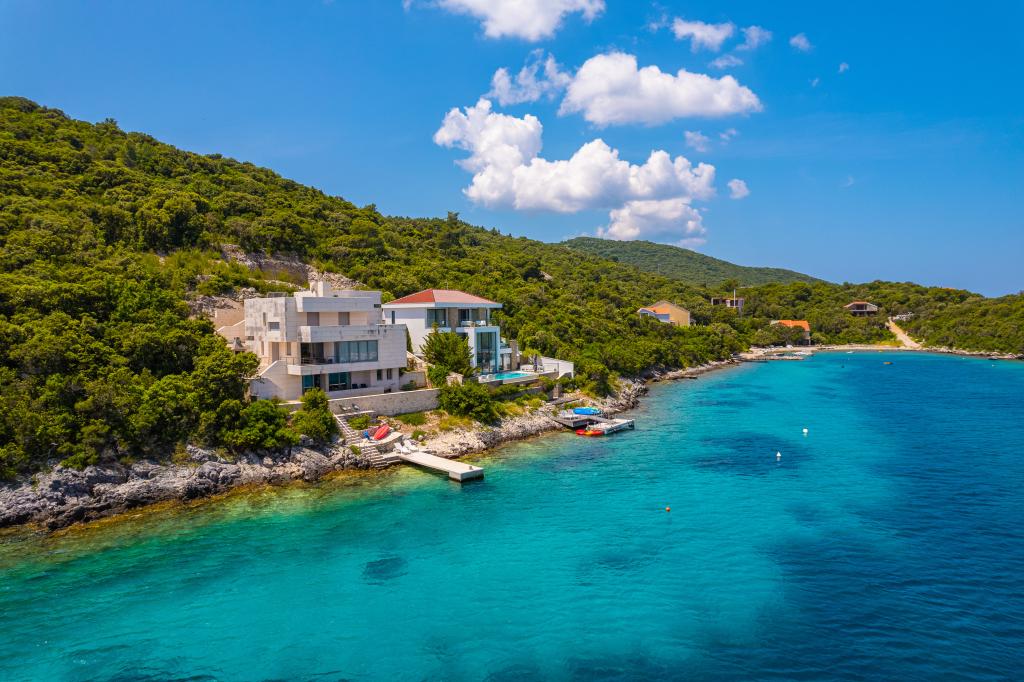 Villa Avantgarde - apartma neposredno ob morju za 4 osebe - zelo miren zaliv - otok Korčula - Hrvaška Je delo znanega hrvaškega in svetovno priznanega arhitekta. Nahaja se v mirnem zalivu, cca. 4 km od centra mesta. V vili vam je na voljo udobno stanovanje velikosti cca. 100 m2, ki je sestavljen iz 2 spalnic, kopalnice in dnevne sobe z dobro opremljeno kuhinjo, jedilnico in dnevno sobo, iz katere je izhod na prostorno teraso z neposrednim dostopom do zasebne plaže. Plaža je od apartmaja oddaljena 9 m. V Vili se oddaja le en apartma. Obkrožajo ga negovane zelenice, zelenje, ptičje petje in morje. Gostom je na voljo zaprto zasebno parkirišče. Spalnica, dnevna soba, jedilnica in terasa gledajo neposredno na morje. Uporablja se lahko skozi celo leto, saj ima centralno ogrevanje.