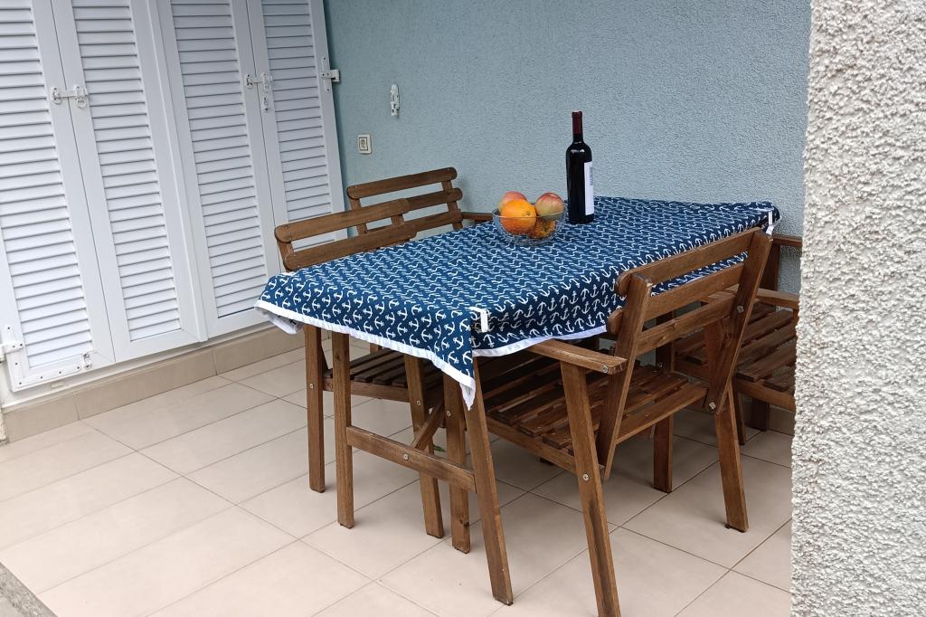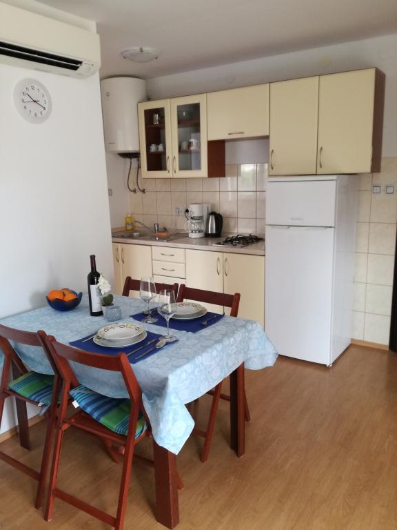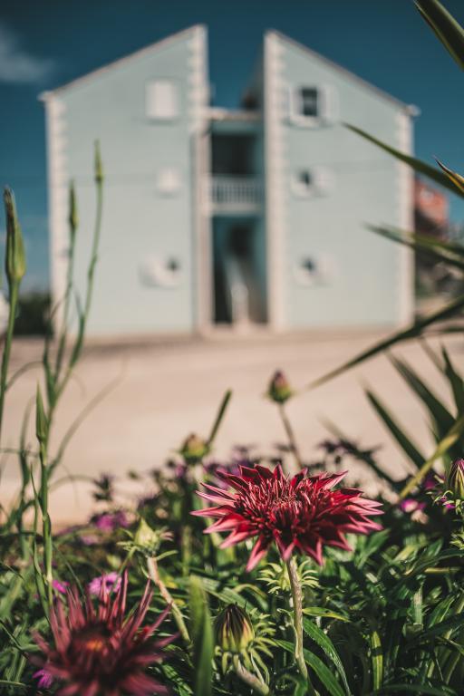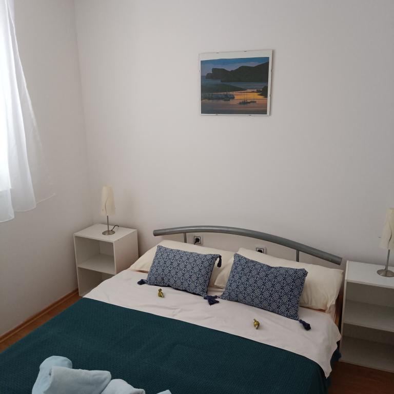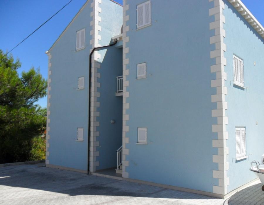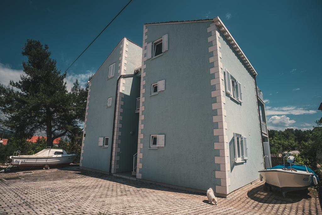 Apartmaji ***, TV/SAT, klima, balkon, ločena spalnica, parkirno mesto, 10 min do morja in plaže, trgovin in kavarn, 25 min lahkega sprehoda do starega mestnega jedra. Hiša se nahaja v mirnem delu mesta v bližini bazena Gojko Arneri, ki ima notranji bazen in telovadnico ter se lahko uporablja vse leto. Apartmaji z ločeno spalnico z zakonsko posteljo, kuhinjo v dnevni sobi z vsemi potrebnimi dodatki, kopalnico s tušem, popolnoma opremljeno, balkonom z mizo in štirimi stoli, parkirnim mestom pred hišo. Cena vključuje: končno čiščenje, parkiranje, Wi-Fi, klimatsko napravo, sušilnik za lase, skupni žar, senčnik, turistično takso.