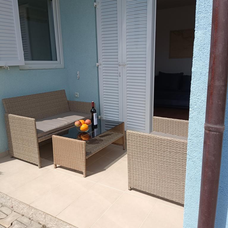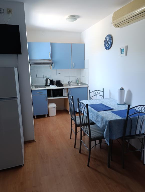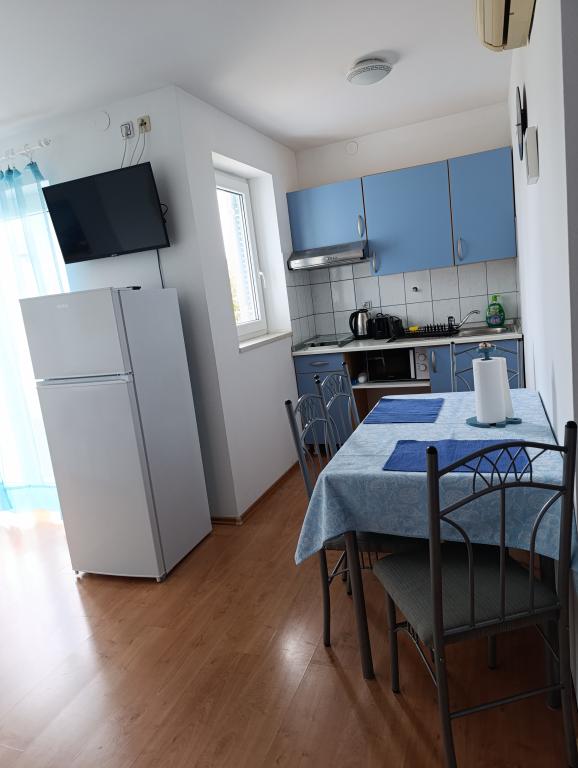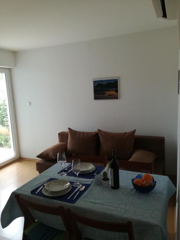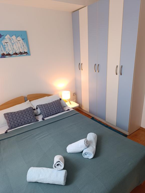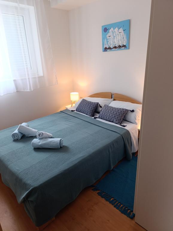Apartmaji ***, TV/SAT, klima, balkon, ločena spalnica, parkirno mesto, 10 min do morja in plaže, trgovin in kavarn, 25 min lahkega sprehoda do starega mestnega jedra. Hiša se nahaja v mirnem delu mesta v bližini bazena Gojko Arneri, ki ima notranji bazen in telovadnico ter se lahko uporablja vse leto. Apartmaji z ločeno spalnico z zakonsko posteljo, kuhinjo v dnevni sobi z vsemi potrebnimi dodatki, kopalnico s tušem, popolnoma opremljeno, balkonom z mizo in štirimi stoli, parkirnim mestom pred hišo. Cena vključuje: končno čiščenje, parkiranje, Wi-Fi, klimatsko napravo, sušilnik za lase, skupni žar, senčnik, turistično takso.