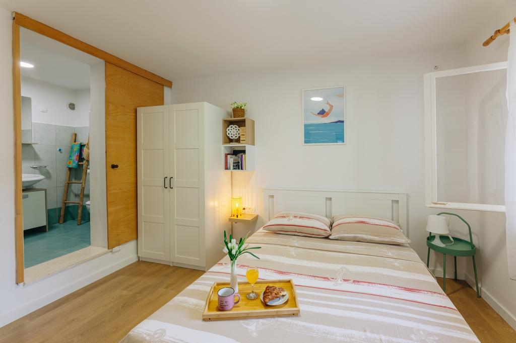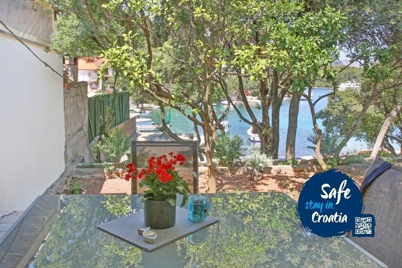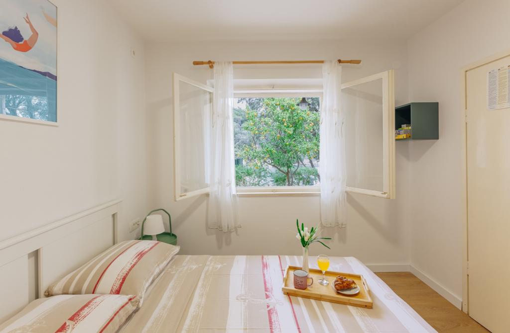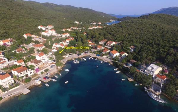 Apartma Dinko je preprosta in udobna majhna hiša na plaži, ki se nahaja v mirnem zalivu Žrnovska Banja, le nekaj korakov do morja in popolnoma zaščitena pred pogledom mimoidočih, obdana z oljčnimi nasadi, agrumi in zelenjavnim vrtom le zate. Če se želite odmakniti od vsakdana in se od vsega odpočiti, ste na pravem mestu! Z Dinkom se boste takoj povezali, dali vam bodo posebno pomirjujočo vzdušje in postali bodo vaš drugi dom! Predstavljajte si svojo prvo jutranjo kavo na terasi ... gledate kristalno čisto morje, poslušate žvrgolenje ptic in čričkov, vdihujete vonj pomaranč, oljk in aromatičnih zelišč ... Apartma je sestavljen iz popolnoma opremljene sodobne kuhinje, 2 spalnici, 2 stranišči in kopalnica, 2 prostorni terasi s pogledom na morje in parkirišče za 2 vozila. Klimatiziran, neomejen internet, TV (digitalni in satelitski programi), žar. Idealno za družine z otroki, pare in prijatelje. Pridite, uživajte in uživajte! Dinko se veseli vašega obiska!