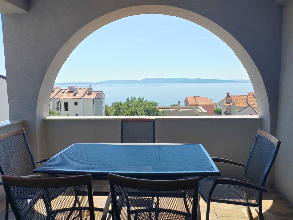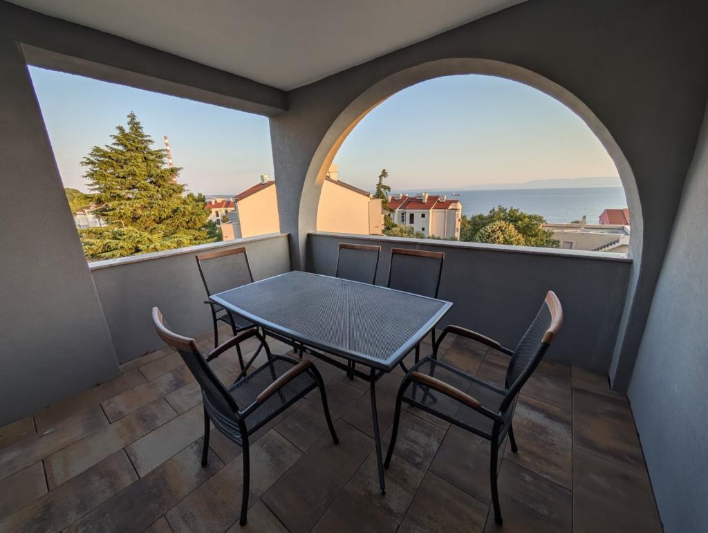 Popolnoma opremljen apartma v 2. nadstropju s pogledom na morje, ki se nahaja v mirnem delu naselja Paveki - Kostrena. Objekt se nahaja 10 minut hoje od glavne plaže in 8 minut od najbližje plaže. Promenada ob glavni plaži. Parkirni prostor se nahaja pred objektom. Do centra Reke je 15 minut vožnje z avtomobilom, do Opatije 30 minut in do mesta Krk 45 minut.