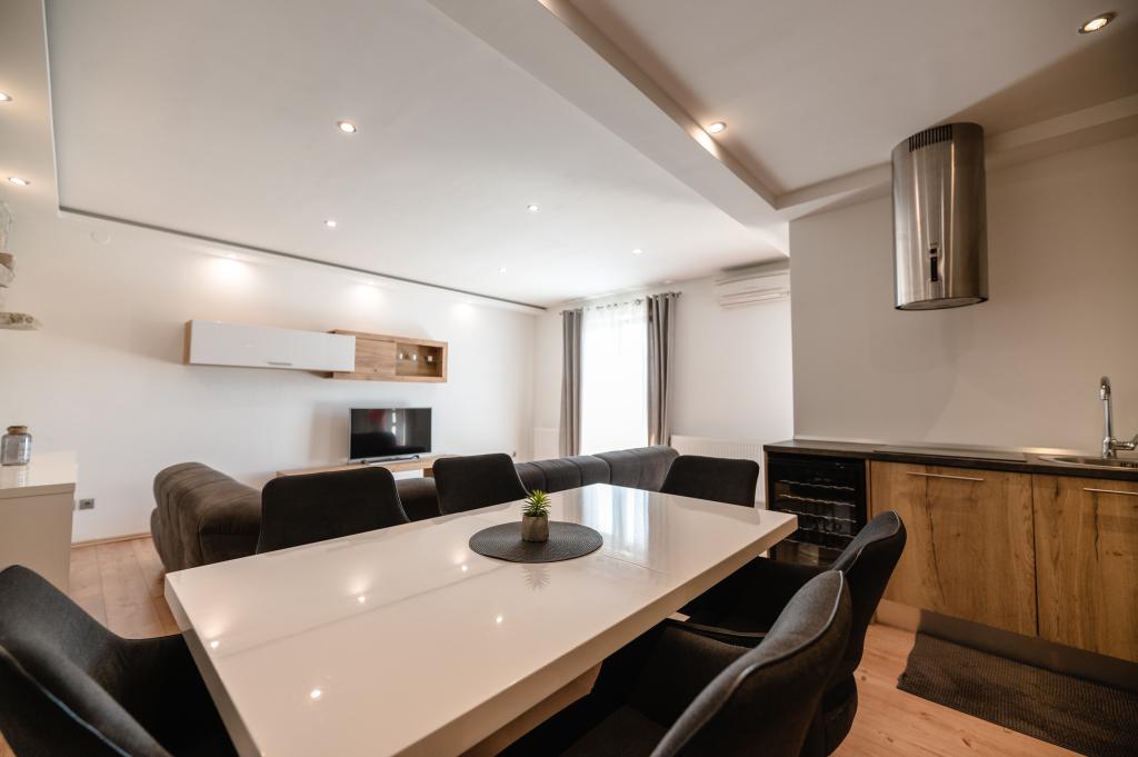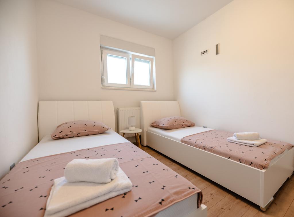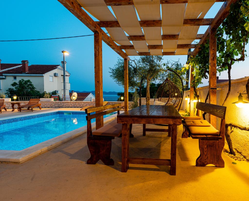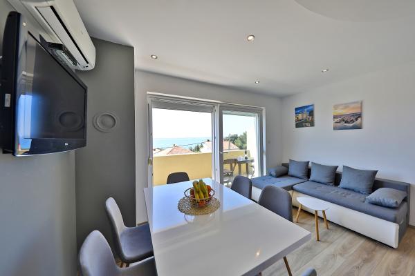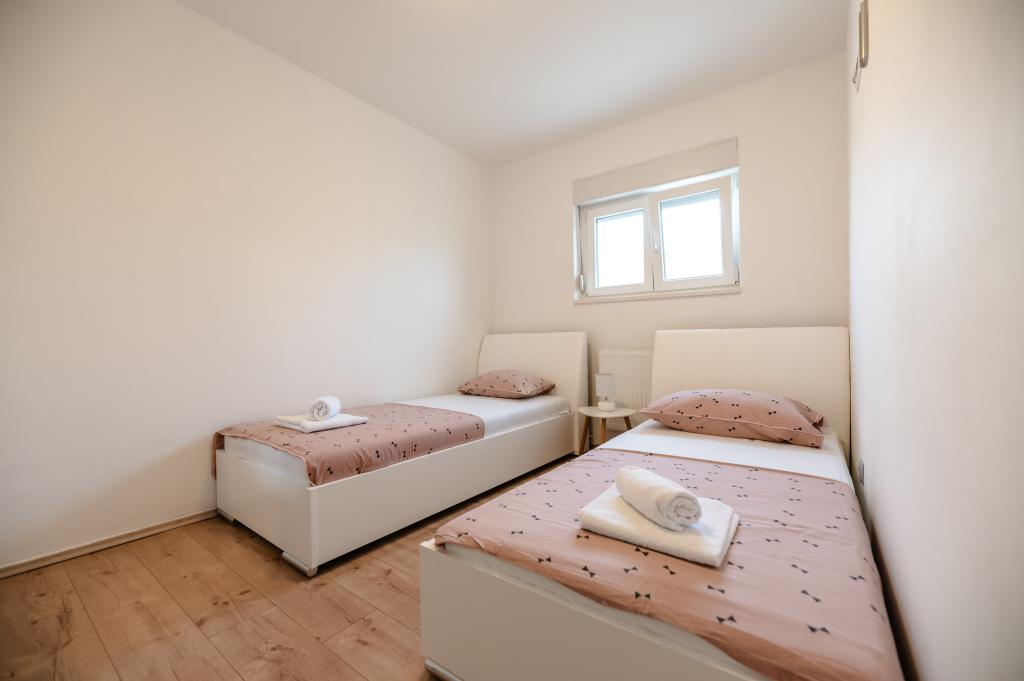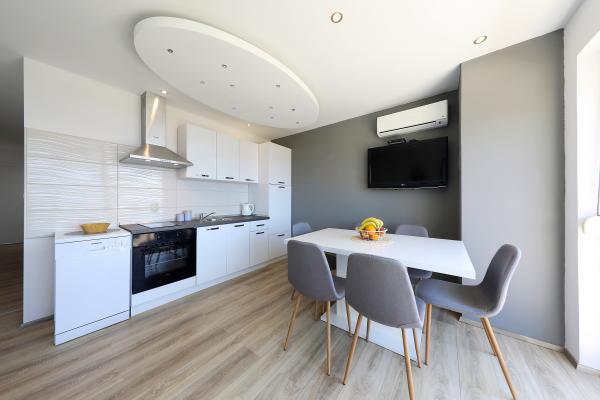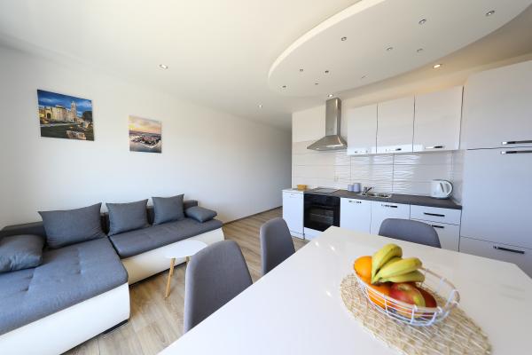 Dobrodošli dragi gostje! Za vse tiste, ki imate radi mir in tišino, nudimo idealno zasebno namestitev, ki vam bo zagotovila vrhunsko udobje, prijeten počitek in občutek lastnega doma. Apartmaji M s čudovitim pogledom na zadrski kanal in otoke se nahajajo v Kožinu. Kožino je naselje v bližini Zadra, le 8 km od starega centra Zadra (cerkev sv. Donata, Pozdrav soncu, glavna zadrska ulica Kalelarga, zadrska riva, najlepši sončni zahod, ...) Eden od apartmajev se nahaja v pritličju, druga dva apartmaja pa se nahajata v drugem nadstropju stavbe s čudovitim pogledom na morje in teraso, kjer se nahaja bazen. Apartmaji so sestavljeni iz kuhinje in jedilnice, dnevne sobe, kopalnice, WC-ja in spalnice. Vsak apartma ima 2 spalnici. K stanovanjem pripadajo parkirna mesta. Na terasi ob bazenu je žar, ki je na voljo vsem gostom, na dvorišču pa otroško igrišče. Apartmaji so na novo prenovljeni in v celoti moderno opremljeni,...