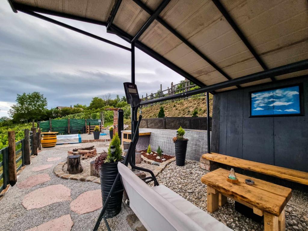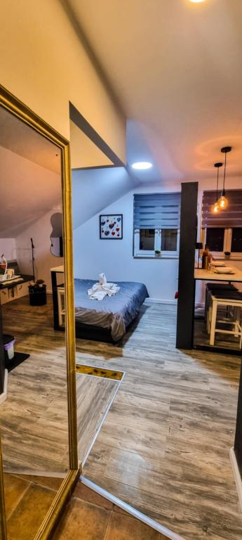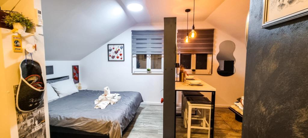 Studio apartma 7th heaven, kapaciteta 2+0, se nahaja na Trškem Vrhu, v neposredni bližini mesta Krapina. 7th heaven je odlična kombinacija rustikalnega in modernega ter odlična možnost za odklop od mestnega hrupa in urbanega življenja z naravo in domačim Zagorjem. Garsonjera je sestavljena iz kuhinje in jedilnice, postelje, dnevne sobe in kopalnice. Namestitev vključuje parkirišče, wi-fi, klimatsko napravo, TV, radio, kuhalnik vode, mikrovalovno pečico, indukcijsko kuhalno ploščo, hladilnik in različne družabne igre za zabavo (nogomet, elektronski pikado, namizni nogomet, viseče bowling itd.). Objekt obdajajo sadovnjaki in cvetlični vrtovi ter manjši del gozda. Gostom je na voljo tudi uporaba žara, tabornega ognja, ležalnikov, gugalnic, paviljona in terase, v toplih poletnih dneh pa tudi manjši zunanji bazen in tuš. Za hišne ljubljenčke ni doplačila in so dobrodošli! Dobrodošli pri nas!