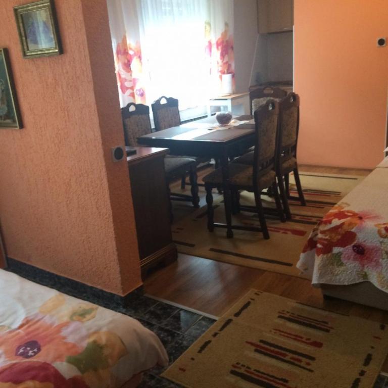 Ponujamo vam 2 apartmaja (2 x 5 oseb) in 2 sobi (2 x 4 osebe). Apartmaji so opremljeni z vsem, kar potrebujete na potovanju ali počitnicah: Kopalnica: WC - tuš - brisače - sušilec za lase. Kuhinja: štedilnik, hladilnik, mikrovalovna pečica, kuhalnik vode, posoda. Imamo tudi zunanjo kuhinjo in žar na dvorišču. Vse sobe imajo ločen vhod z WI-FI, TV in klimatsko napravo. Imamo tudi teraso, kjer vas z veseljem pogostim s kavo in pijačo dobrodošlice. Hišni ljubljenčki so dobrodošli. Dosegljivi smo od 0-24 ur. Zajtrkov ne pripravljamo, lahko pa si ga pripravite sami v naši kuhinji.