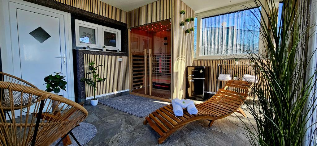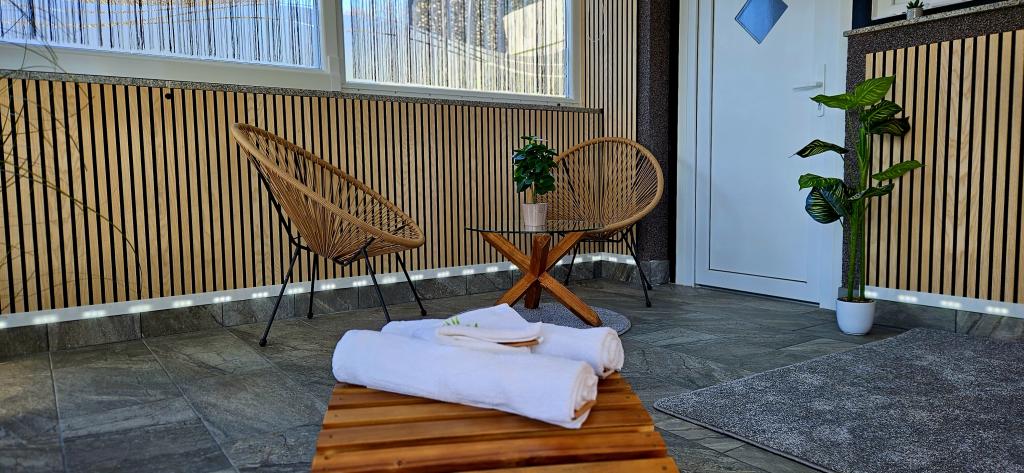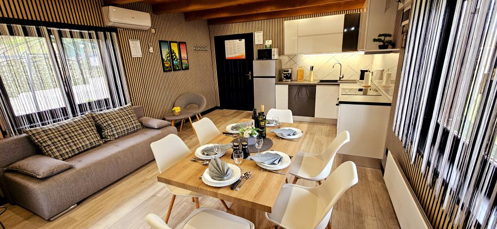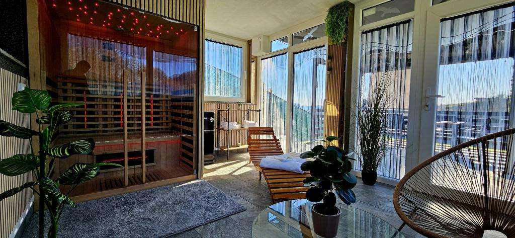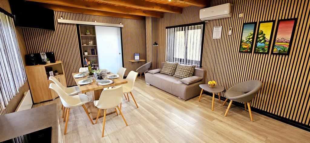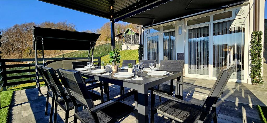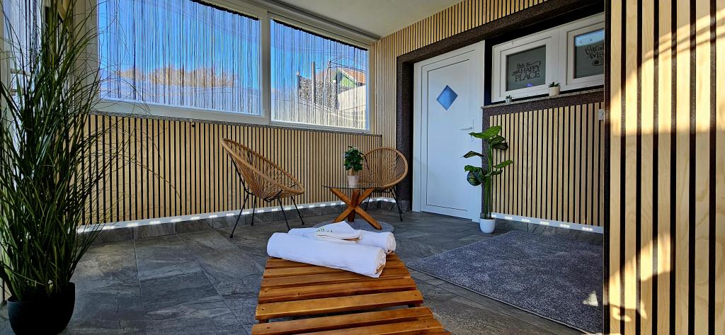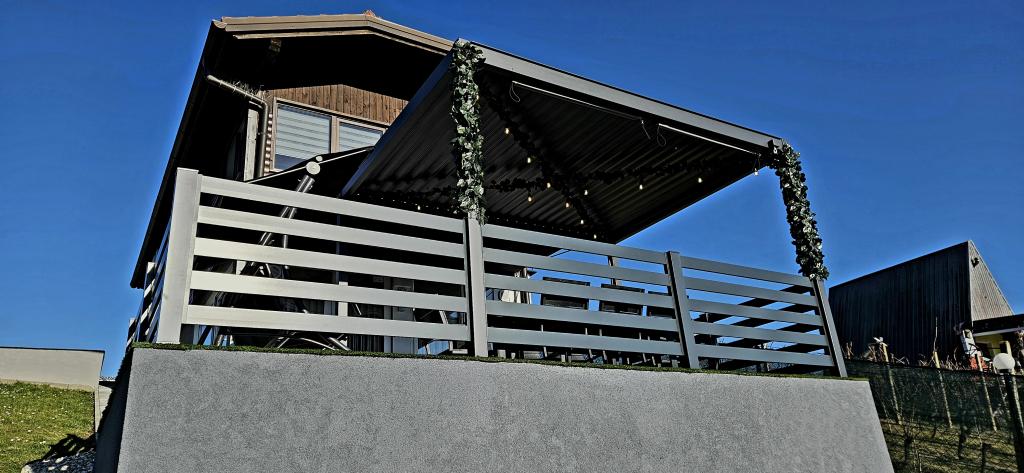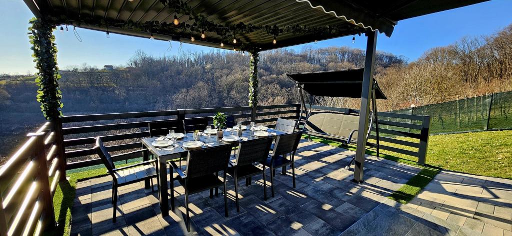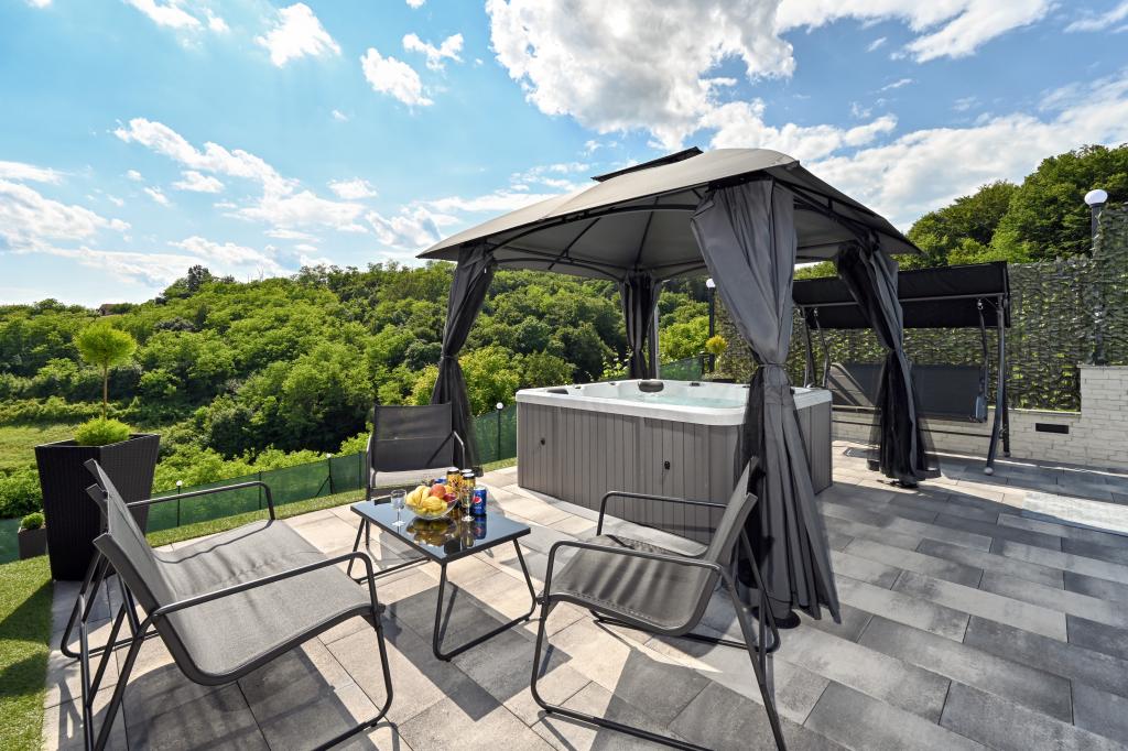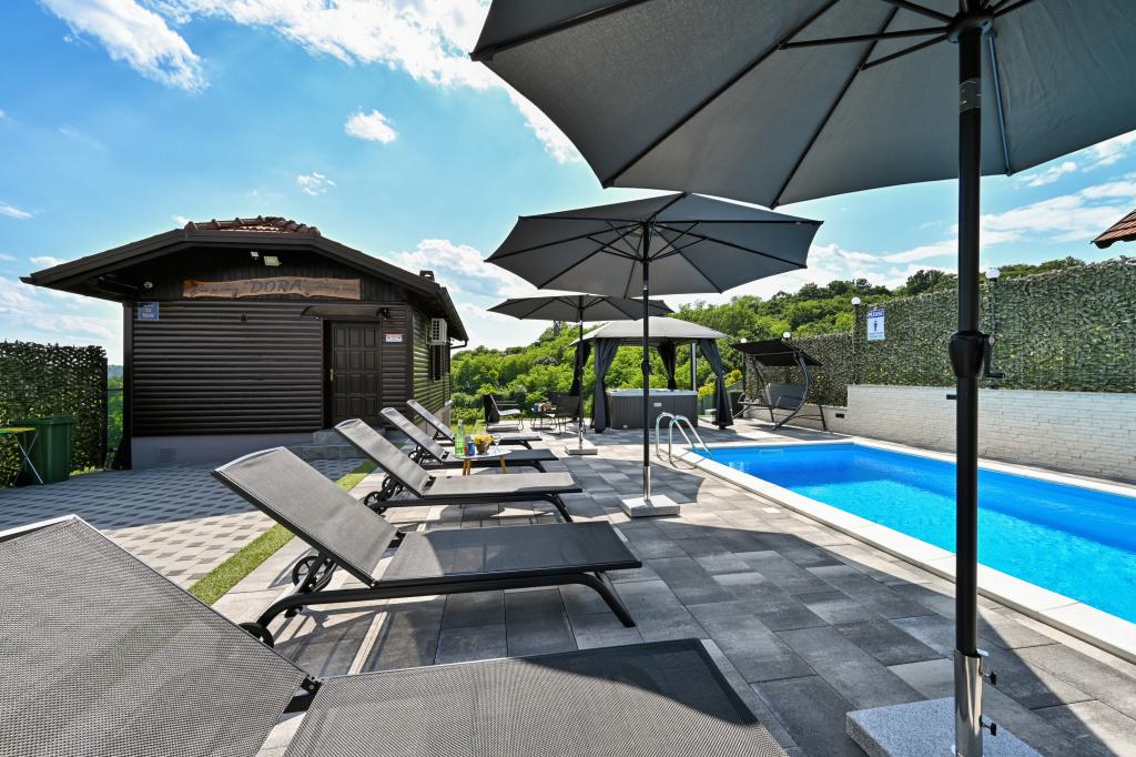 - Počitniška hiša s tremi zvezdicami v mirnem delu hrvaškega Zagorja. - Zasebno parkirišče - Velika terasa: bazen zdaj z avtomatskim doziranjem pH in klora za brezhibno čisto in zdravo vodo, spa/jacuzzi za 5 oseb - Terasa opremljena s 5 ležalniki, vrtna sedežna garnitura, klop, zunanji solarni tuš, senčniki, vrtna gugalnica za 3 osebe - Zgornji del hiše: jedilnica, kuhinja, bar, TV, raztegljiv kavč, hladilnik, pralni stroj, spalnica z zakonsko posteljo s TV, garderobne omare, kopalnica/wc, s čudovitim razgledom - Spodnji del: terasa z lep razgled, miza in stoli za 8 oseb, žar, postelja, omare, spalnica zakonska postelja s TV, - Hiša se nahaja 7 minut od avtoceste A2 Zagreb-Macelj