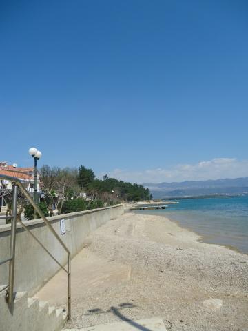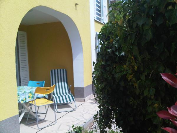 Lep, urejen apartma. Imeli smo svoj vhod, dovolj velika terasa. Gazdarica prijazna. Gostilna 1min hoje stran , plaza 2minuti , pekarna 5minut. Prijazni sosedi. Plaza primerna tudi za invalidski vozicek. Mivka in igrala za otroke... se se vrnemo. Mesto je ob vecerih mirno, brez nocnega nemira.
