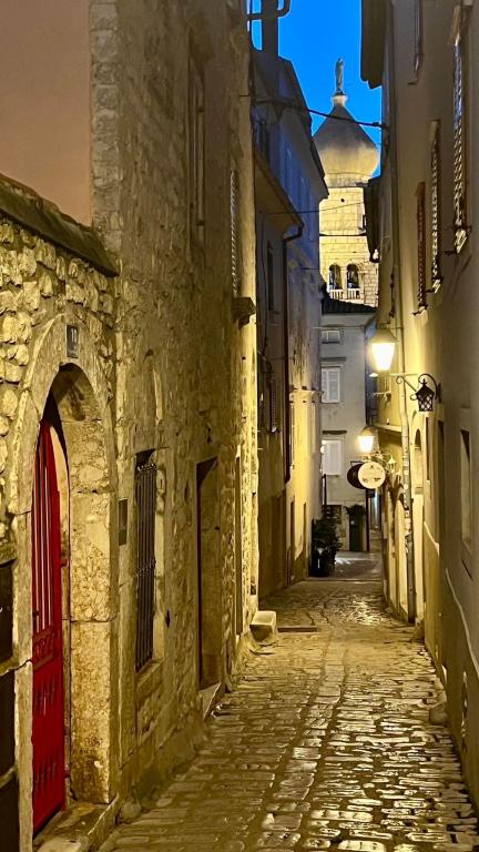 Apartma se nahaja v starem zgodovinskem središču mesta, v središču mesta Krk. Glavna mestna plaža je oddaljena 250 metrov od nepremičnine. Mestno središče, osrednji mestni trg in mestna promenada so od apartmaja oddaljeni 100 metrov. Najpomembnejši zgodovinski znamenitosti, krška katedrala in Frankopanski grad, se nahajata v neposredni bližini nepremičnine, z vhoda v katedralo pa se odpira pogled na samo katedralo. Med bivanjem imajo gostje dostop do vseh ugodnosti brez uporabe avtomobila. Za goste apartmaja je na voljo brezplačno parkirišče, 250 metrov od nepremičnine.