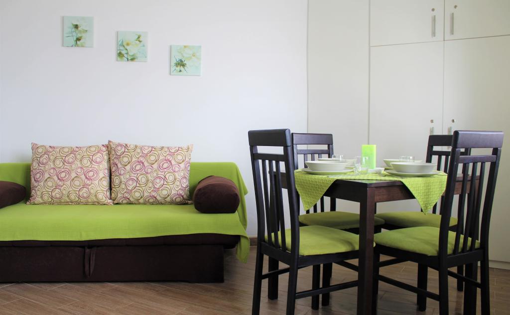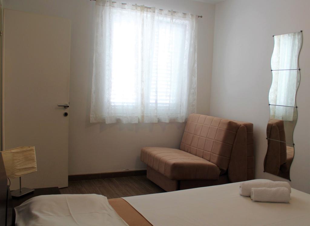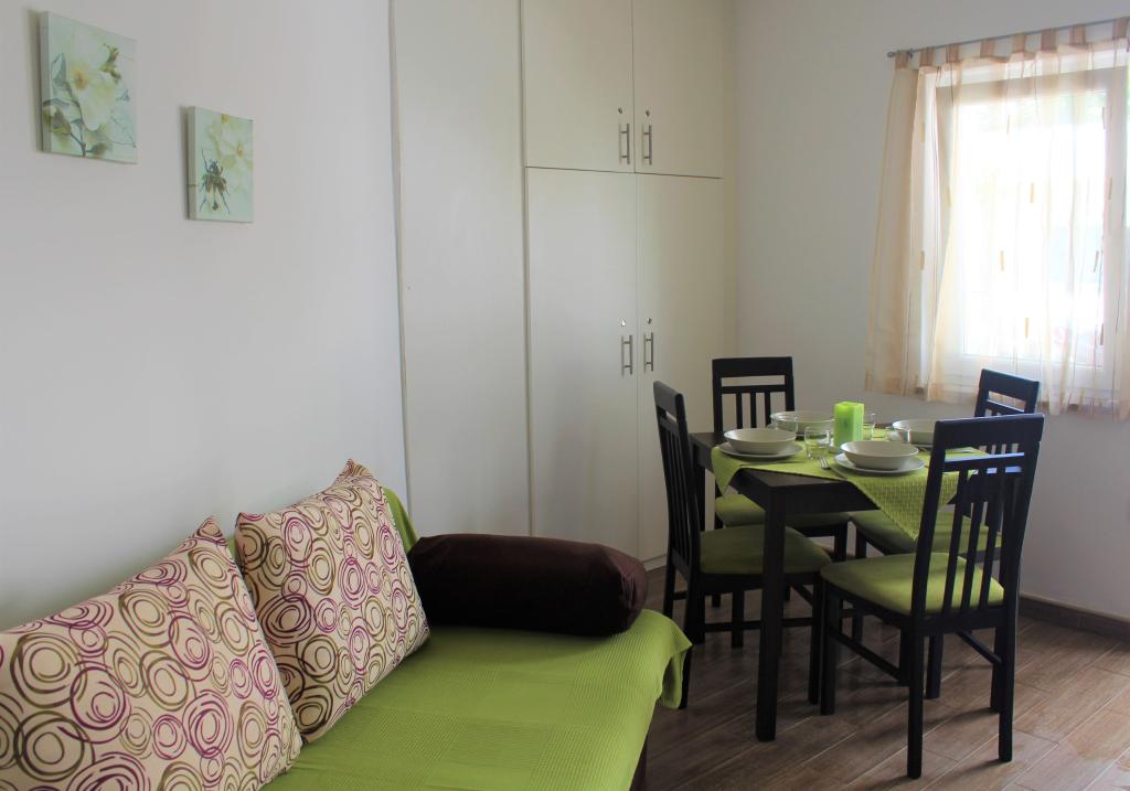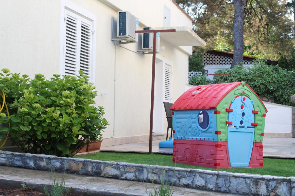 Apartma se nahaja v mirnem predelu. Ima teraso s pogledom na vrt. Nahaja se 5 minut hoje od plaže in centra. Nahaja se v bližini avtobusne postaje. Ponuja brezplačen WiFi in zasebno parkirišče. Kuhinja je opremljena s pečico, hladilnikom, grelnikom za vodo in aparatom za kavo. Posteljnina in brisače so na voljo.