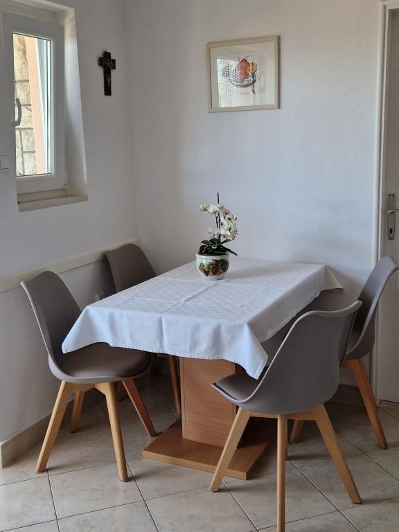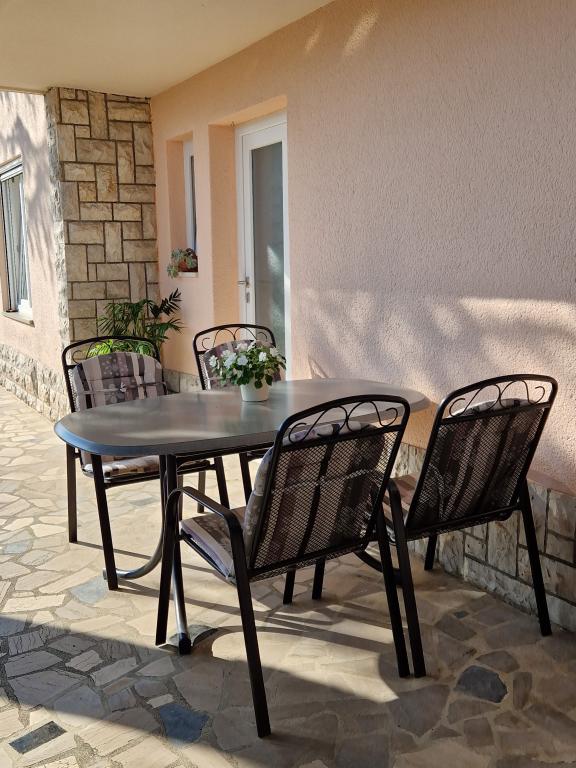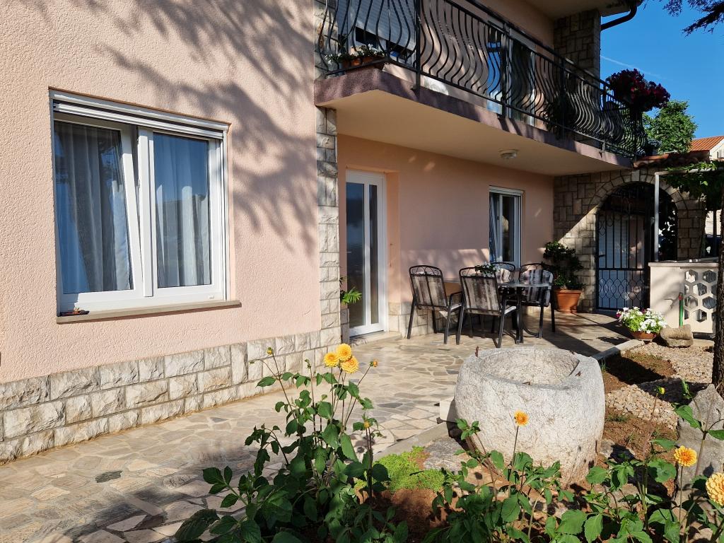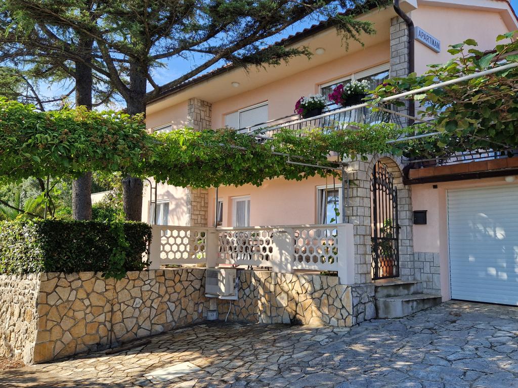 Apartma na mirni in privlačni lokaciji v kraju Krka, obdan z zelenjem, s pogledom na morje in mestno obzidje. Nepremičnina se nahaja 80 m od plaže in 100 m od centra. Nepremičnina ima lastno parkirišče. Apartma je sestavljen iz 2 spalnic z zakonsko posteljo, kuhinje, jedilnice in kopalnice. Ena spalnica ima dodatno ležišče. Terasa s sedežno garnituro ponuja sproščujoče trenutke podnevi ali zvečer. Bližnje plaže ponujajo različne športne in rekreacijske vsebine. Dobrodošli!