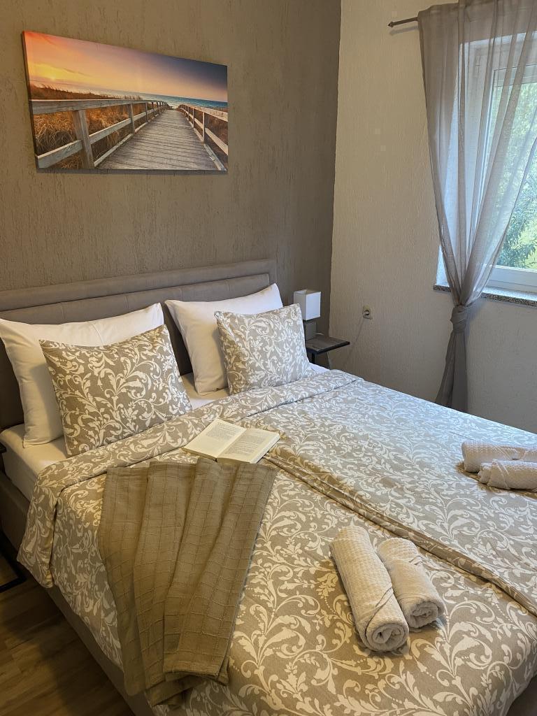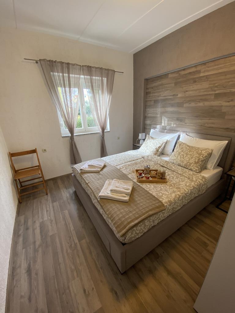 Turistična taksa je vključena v ceno. Dokument o potrditvi rezervacije ob rezervacijiPrijava je bila popolnoma brezhibna. Na jedilni mizi so nas čakali majhna steklenica domačega likerja in piškoti. Apartma je lepo opremljen, vrt pa je lepo urejen, s kamnitim žarom in sedežno garnituro. Je zelo vabljiv kraj za počitek. Tudi lastnica je zelo prijazna in ustrežljiva. Bližnja plaža je oddaljena le 5 minut hoje. Tam sta tudi dve dobri restavraciji. V bližini je tudi čudovito staro mestno jedro Krka (15 minut hoje). Vse nam je bilo všeč in bi ga priporočili. Tam smo se počutili zelo udobno.