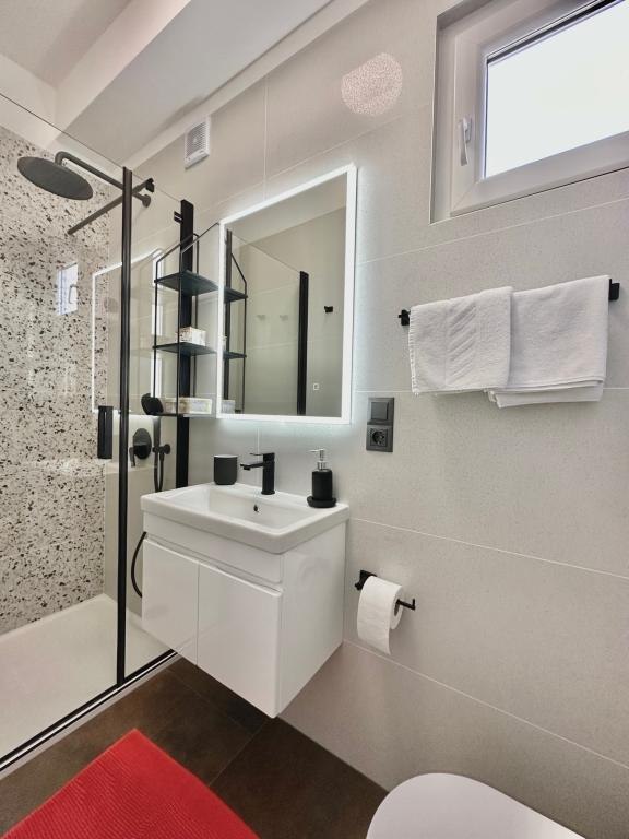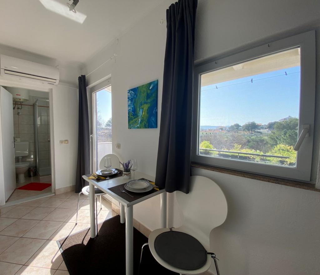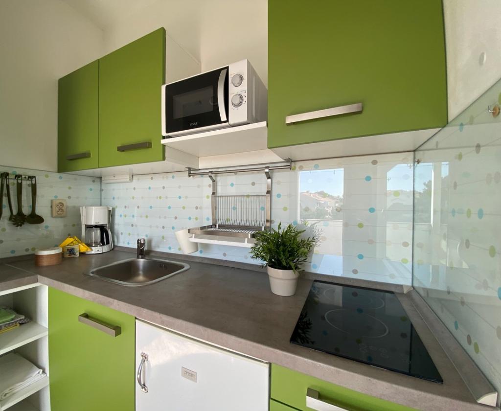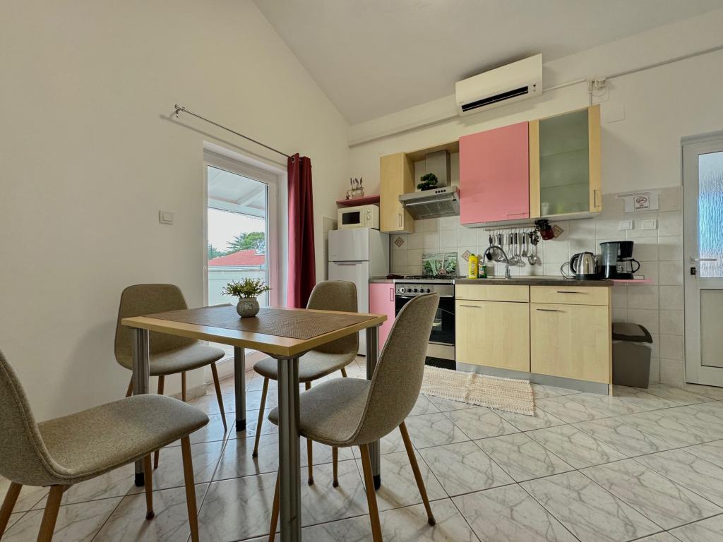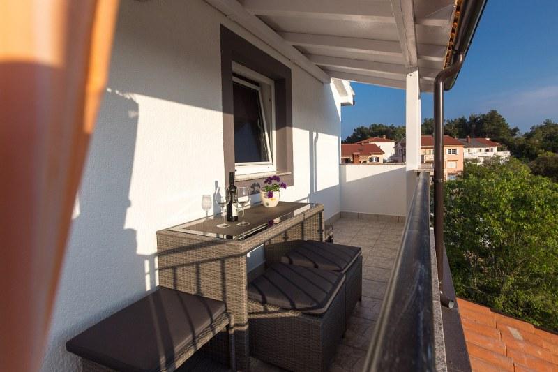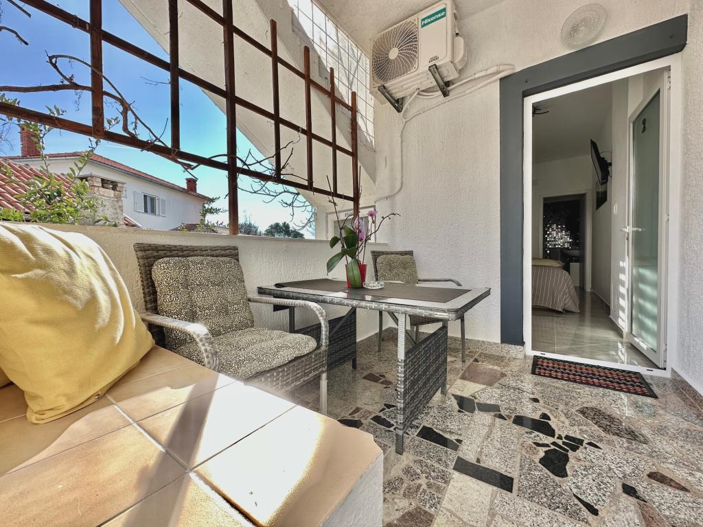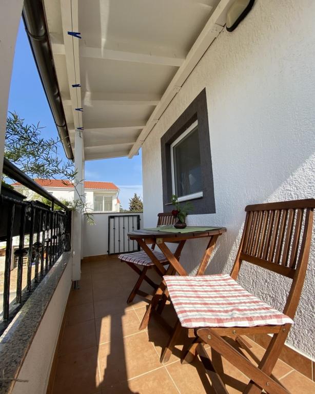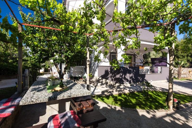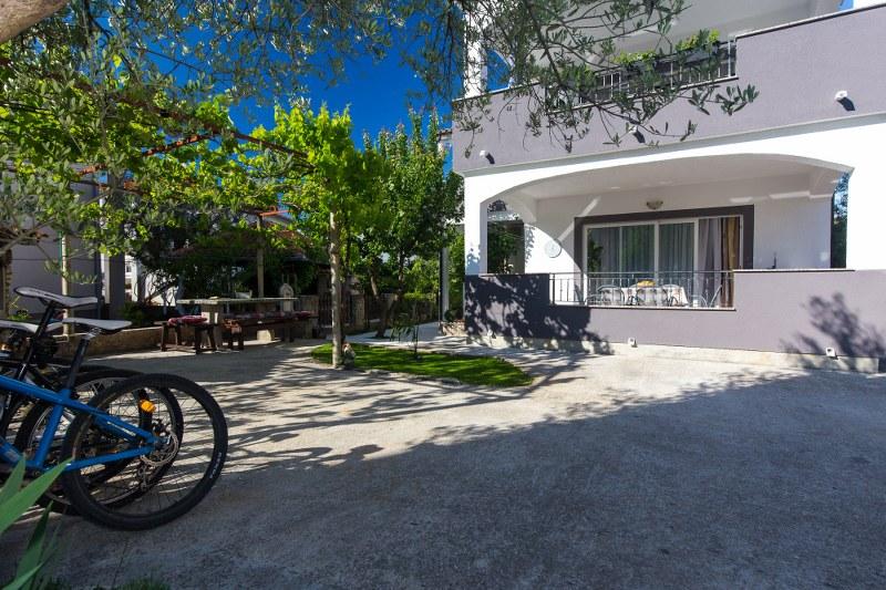 Hiša se nahaja na zelo ugodni lokaciji, v mirni soseski, nekaj minut hoje stran od plaže in deset minut hoje do centra mesta. Objekt sestavlja 5 apartmajev. Trije izmed njih so studii za do 2 osebi, en apartma za do 3 osebe in 75 kvadratnih metrov velik apartma za do 5 oseb. Vsak apartma ima popolnoma opremljeno kuhinjo, lep balkon ali teraso, zaseben vhod in varovano parkirišče. Na voljo je skupni vrt z opremo za peko na žaru. ***Hišni ljubljenčki so dobrodošli ob predhodni najavi in doplačilu 12 eur na dan (plačilo na licu mesta).