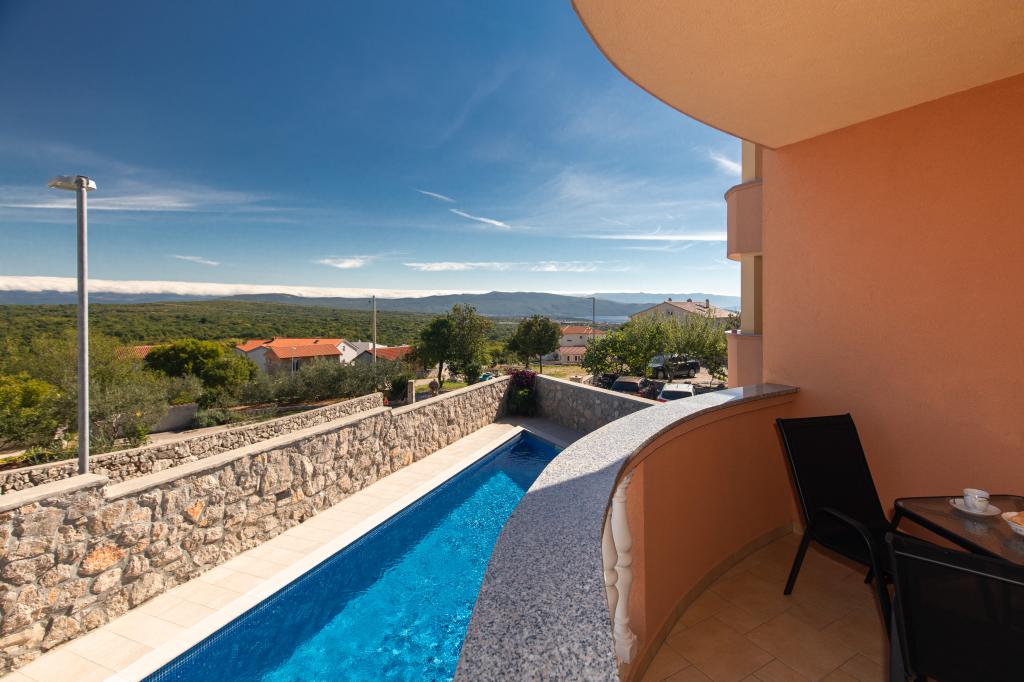Naselje Salatić je približno 3 km oddaljeno od mesta Krk, na nadmorski višini približno 140 m, s prijetnim blagim podnebjem in svežim zrakom. Z njega se razprostira čudovit razgled od Učke, preko Velebita vse do čudovitega modrega morja in Kvarnerskega arhipelaga (Golog otok, Grgura, Cres...) Apartmaji so sestavljeni iz ene (A2 2) ali dveh (A4 2) dvoposteljnih sob. , kuhinja, jedilnica, dnevna soba, kopalnica in balkon. ) Balkoni z že omenjenim čudovitim razgledom so idealen kraj za druženje ob večerji ali za miren popoldanski počitek. Opremljena je z vsemi potrebnimi napravami, ki bodo vaše bivanje naredile še prijetnejše in lepše. Ponujamo tudi velik bazen s slano vodo, idealen kraj za počitek, zabavo in izogibanje gneči na plažah. Apartmaji so le 5 minut vožnje z avtomobilom oddaljeni od centra Krka (3,5 km) in številnih mestnih plaž. Naselje je zelo dobro prometno povezano, kar vam bo v veliko pomoč pri raziskovanju podeželskih predelov otoka