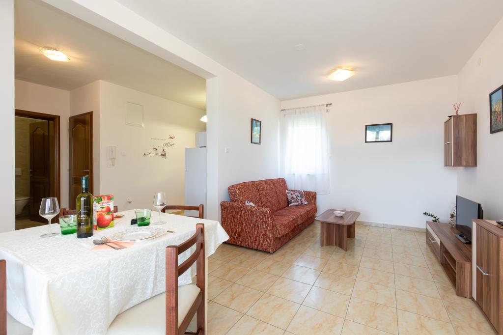 3 km od Krka, primeren za tiste, ki imajo sredstva, da se premaknete, stanovanje je nova in opremljena z vsem, kar potrebujete za sproščeno bivanje organizirano. Kuhinja ima tudi čajnik in mikrovalovno pečico, pa tudi hladilnik in električni kuhanje. Ali perilo za posteljo, kopalnico in kuhinjo, detergenti in mila. Privatno parkirišče z rabo vode za pranje avtomobilov. Žar. Tomislav in njegova lepa družina so na voljo za zaslišanje v vljudni, ne da bi bili vsiljivi kdajkoli! Priporočamo za 3 osebe ali 2 odrasla in 2 majhnih otrok, saj kavč ni dvakrat.