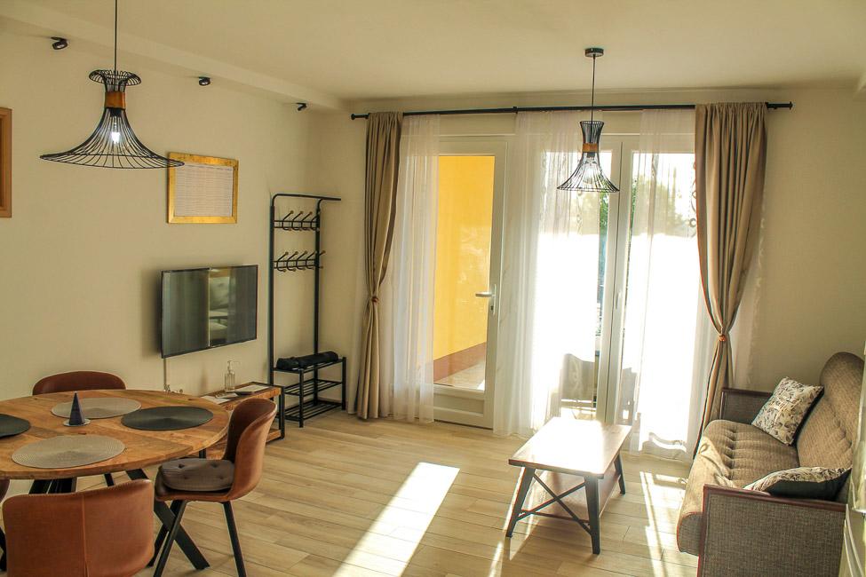 Od letošnjega leta (2021) smo v ponudbo apartmajev vključili tudi uporabo zasebnega kopališča ob morju. 2.200 m2 parcele ima dostop za avtomobile, varovano parkirišče v senci, urejen prostor za sončenje in dostop do morja. Je v lasti moje družine in je na voljo izključno uporabnikom naših apartmajev (9 namestitvenih enot). Nahaja se na zahodni strani otoka, 10 km od apartmaja, v bližini vasi Pinezići. Nedaleč stran od kopališča je tudi restavracija s hrano in pijačo. Kot sem že rekel, je to prvič v naši ponudbi in prepričani smo, da bodo naši gostje uživali na čudoviti plaži brez običajne gneče. V ceno apartmaja je vključena uporaba bazena, wifi, klima, ura. TV z več kot 60 TV programi, parkirišče... V ceno je vključena posteljnina in končno čiščenje apartmaja. Našim gostom bomo z veseljem posredovali vse dodatne informacije in jih usmerili v vse zanimivosti našega otoka, pa tudi v vse pomembnejše dogodke, ki se na otoku Krk odvijajo v poletnem času.