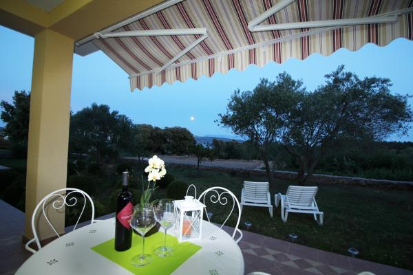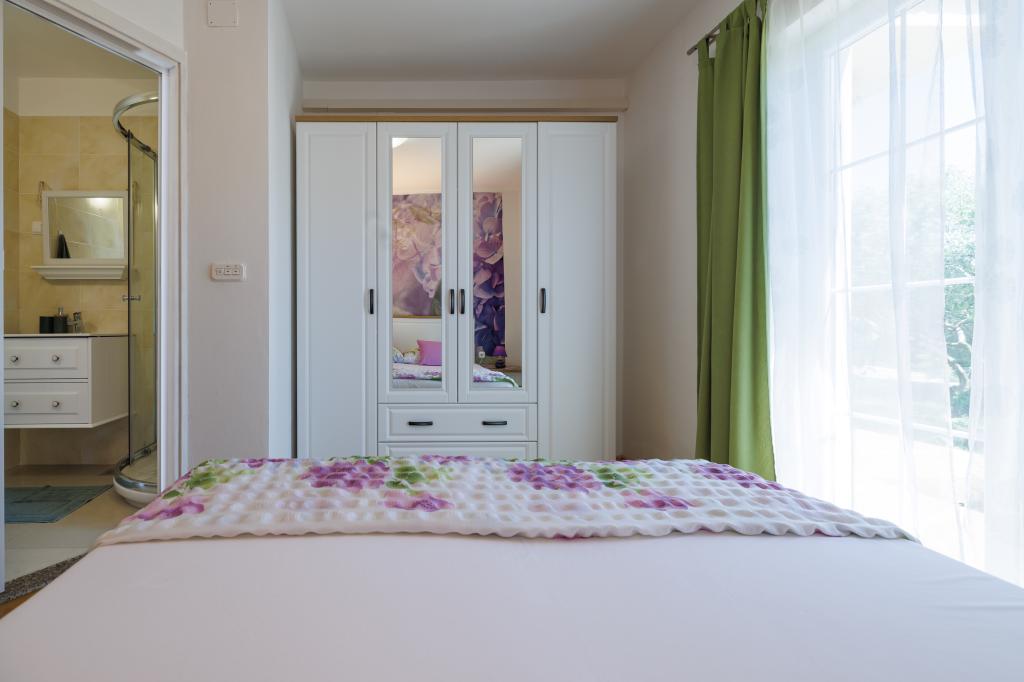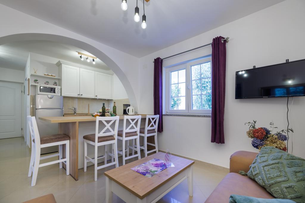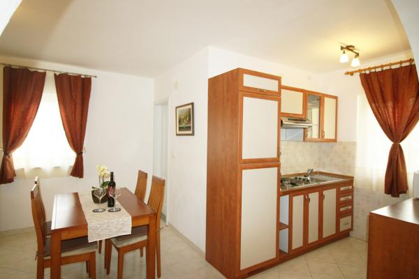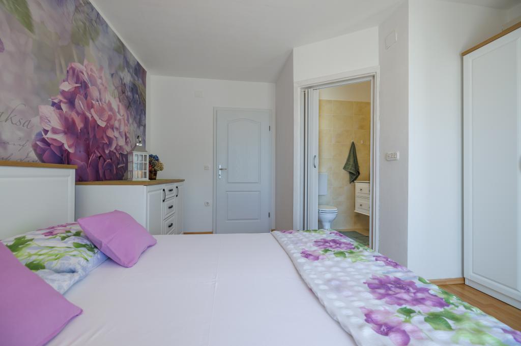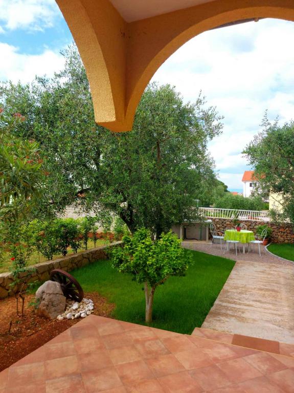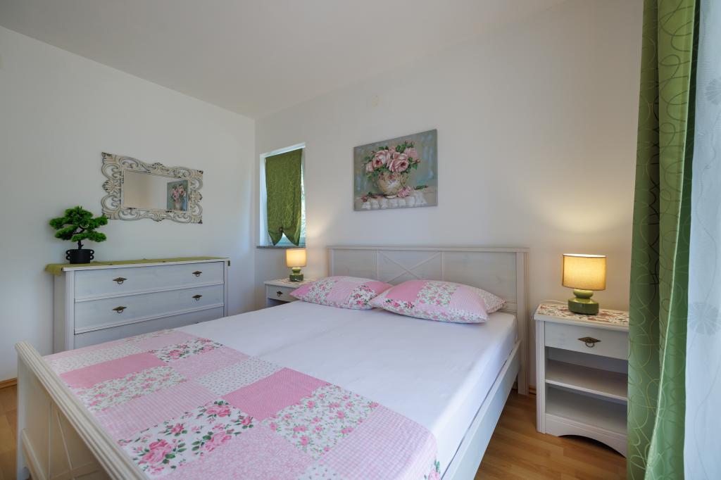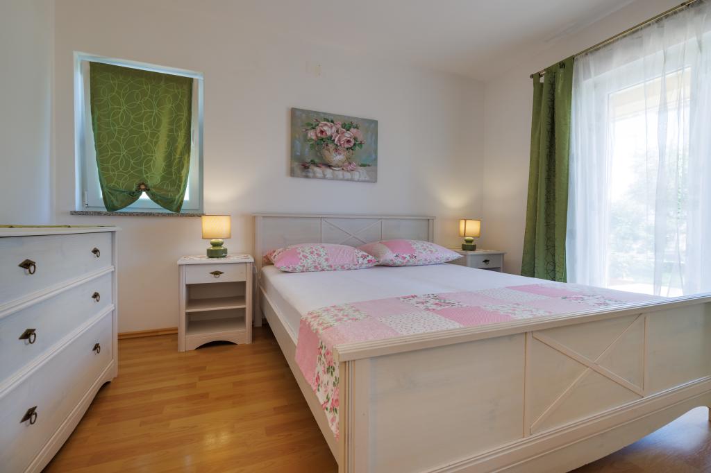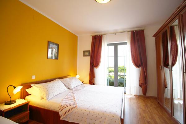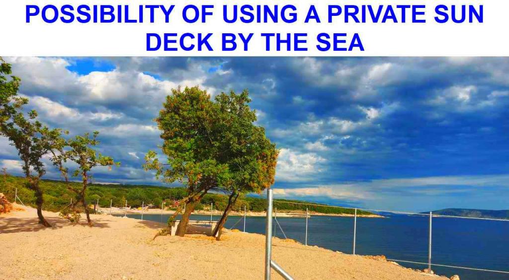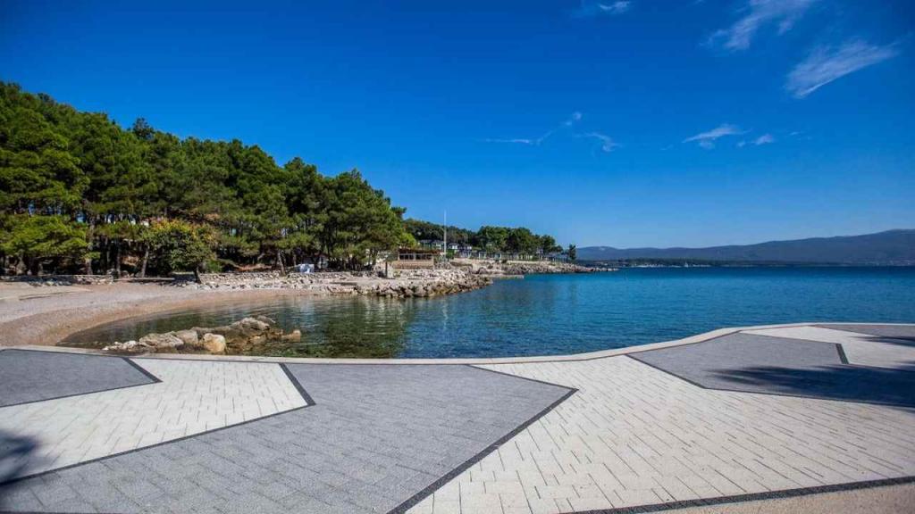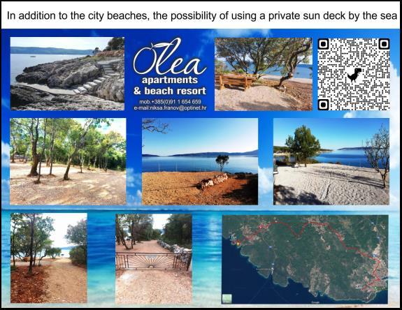 Novi sodobno opremljeni apartmaji v mirnem in privlačen Krke lokaciji s pogledom na morje. Hiša se nahaja 300 m od plaže in 700 metrov od središča mesta. Stavba ima lastno parkirišče in vrt. Apartmaji so dobro opremljeni in udobno bivanje.