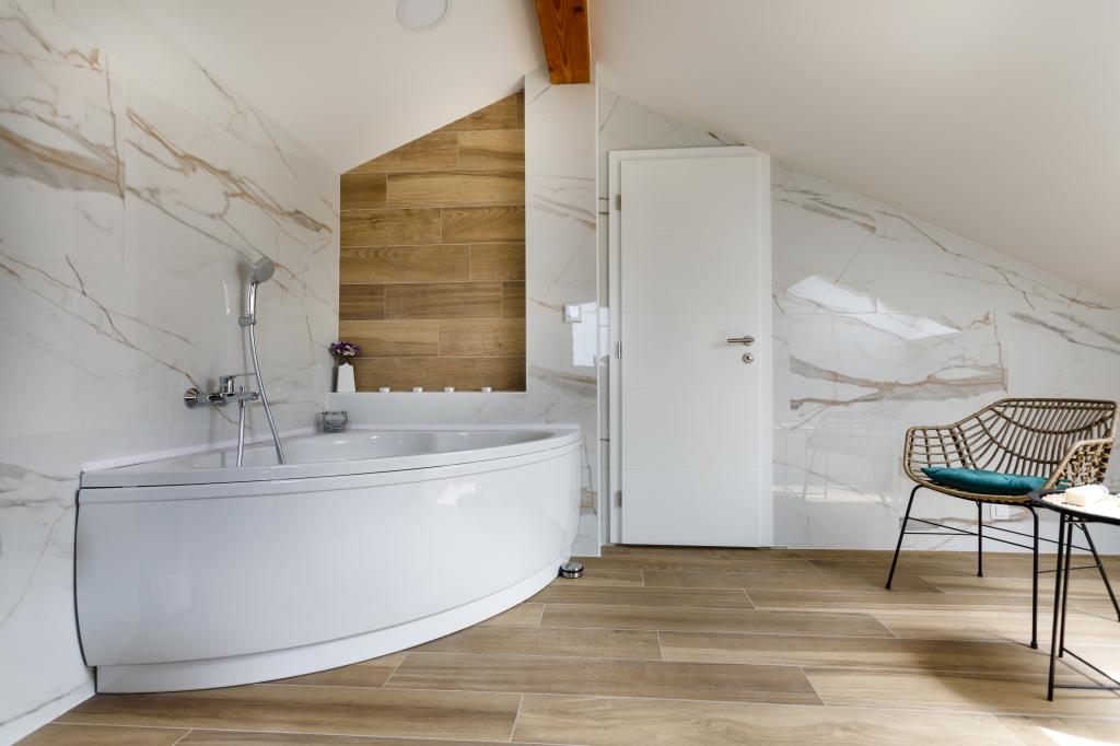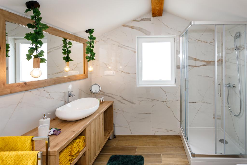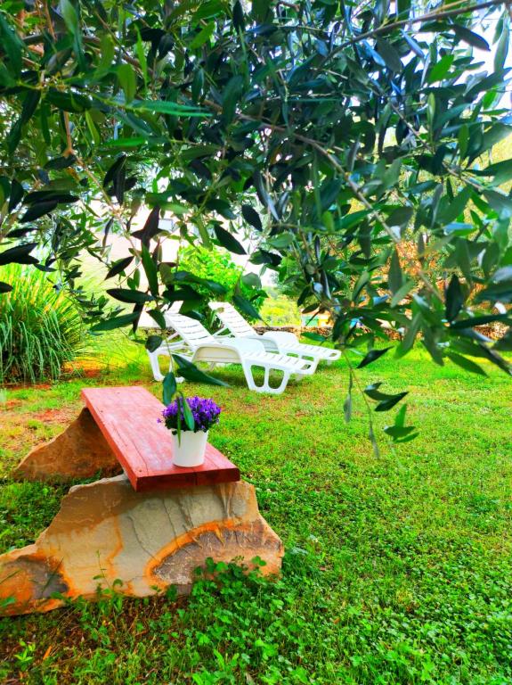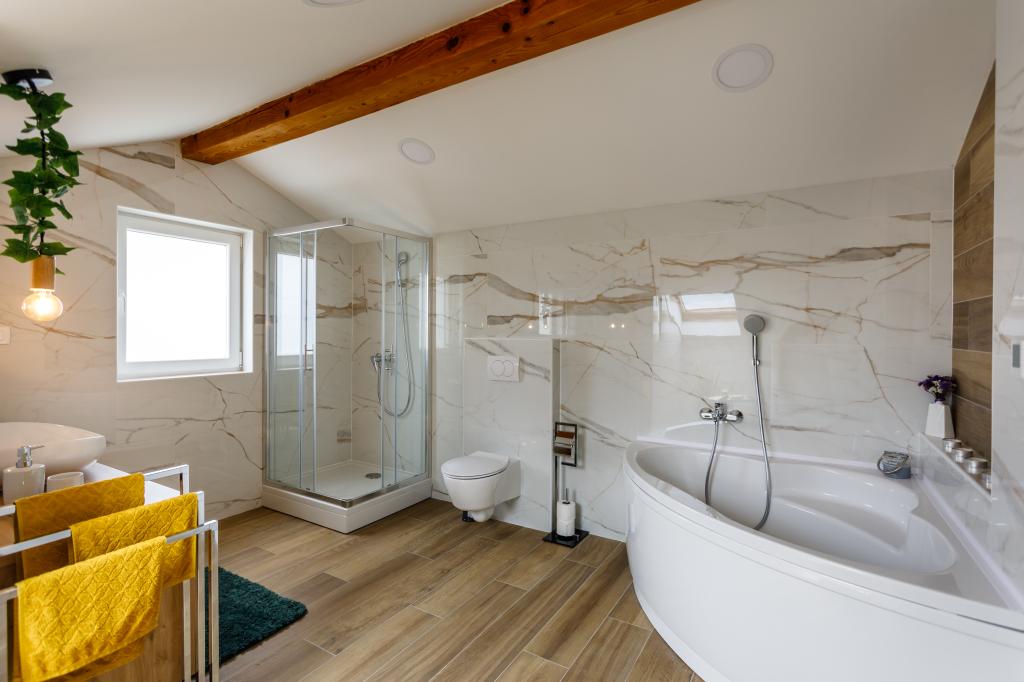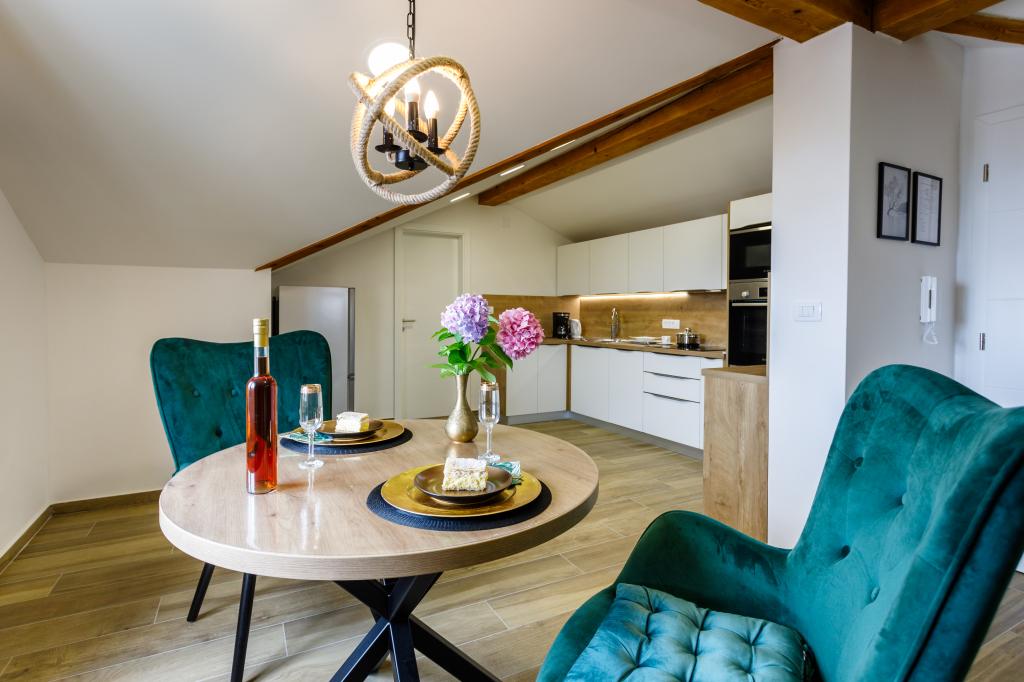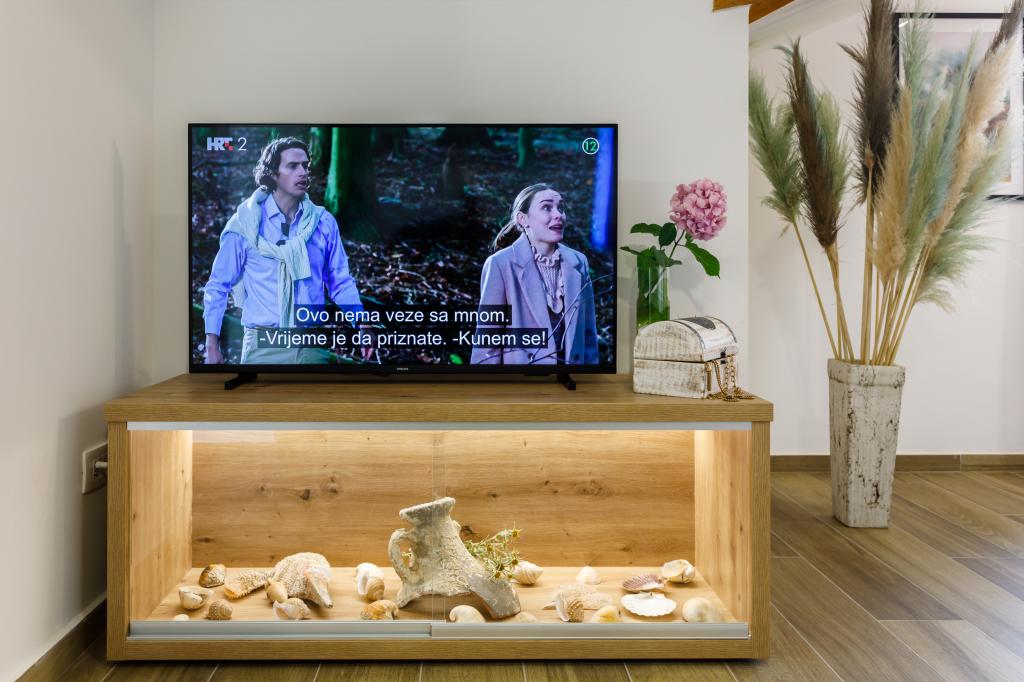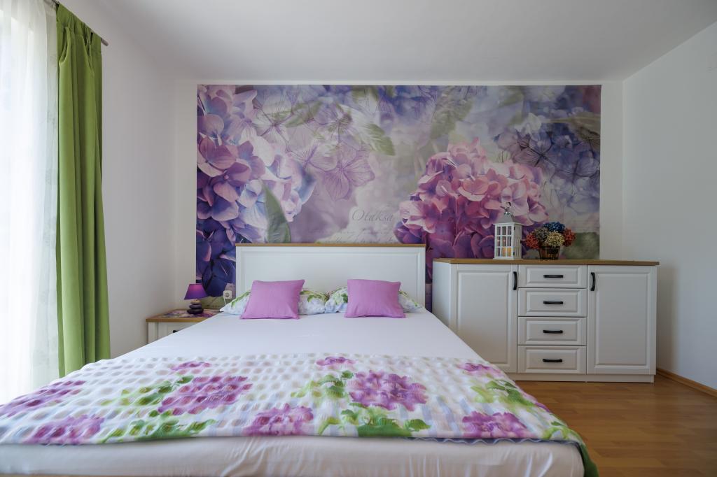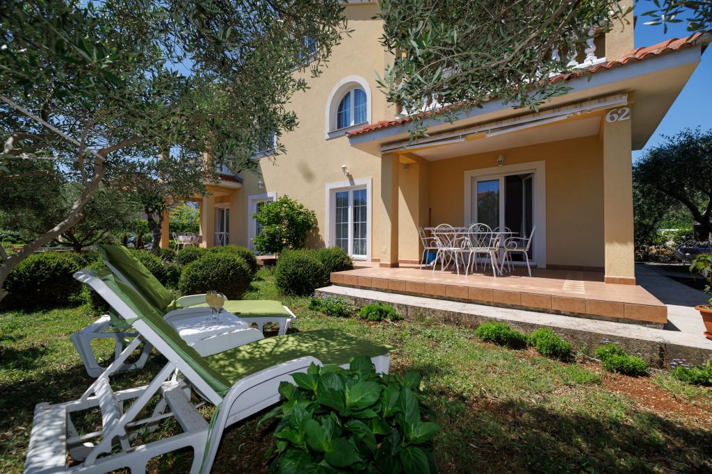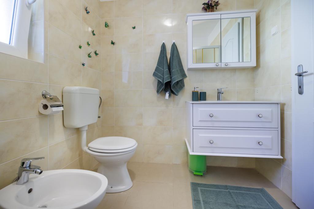 Novi sodobno opremljeni apartmaji v mirnem in privlačen Krke lokaciji s pogledom na morje. Hiša se nahaja 300 m od plaže in 700 metrov od središča mesta. Stavba ima lastno parkirišče in vrt. Apartmaji so dobro opremljeni in udobno bivanje.