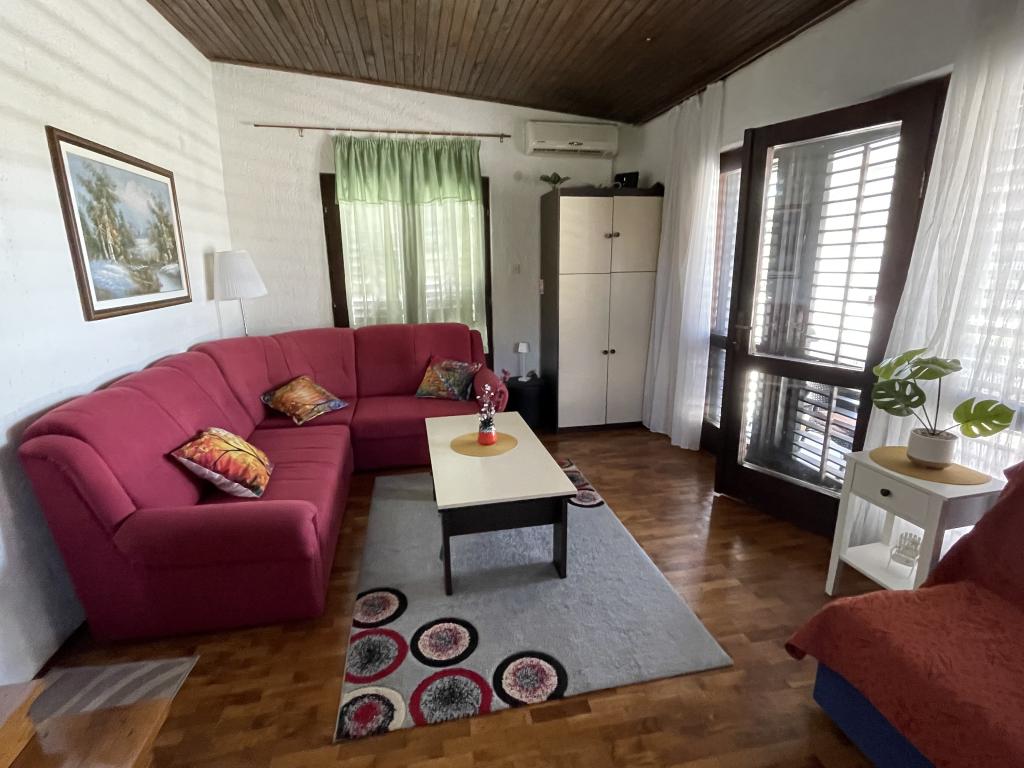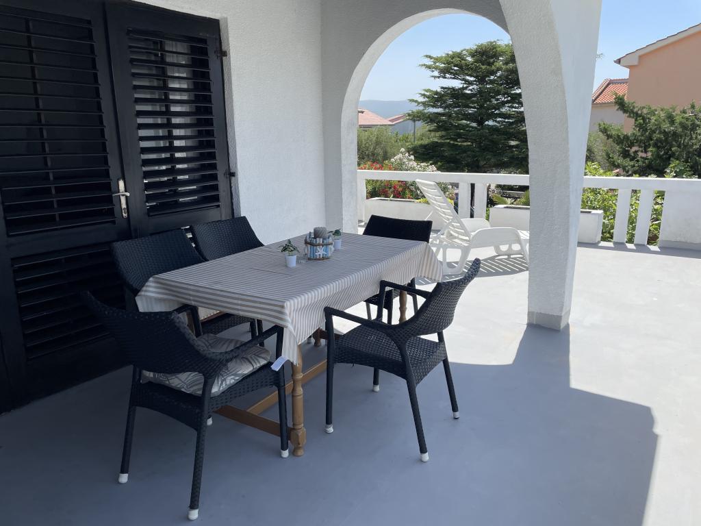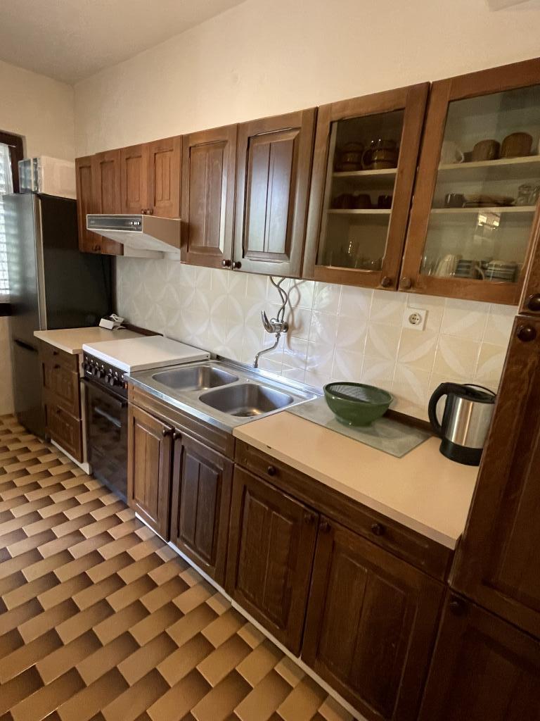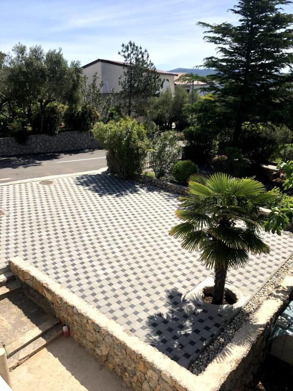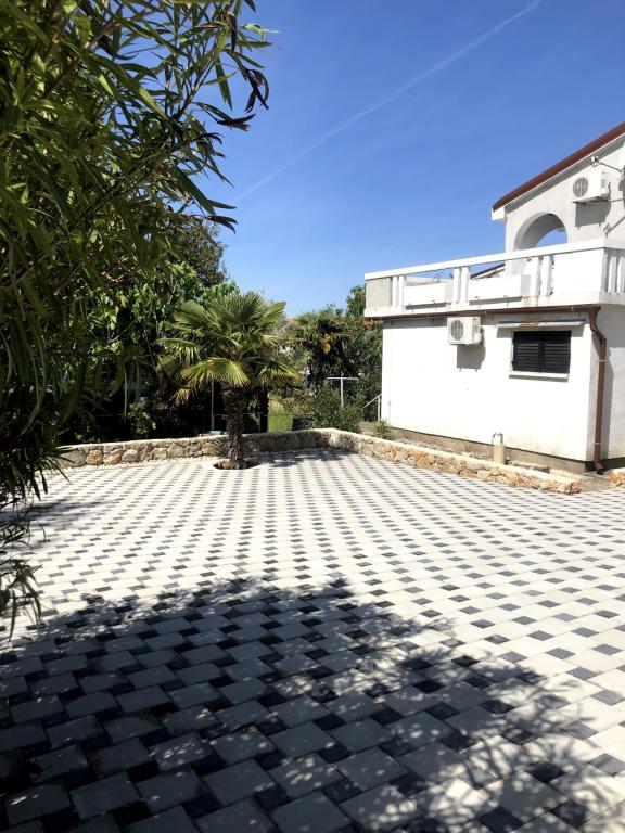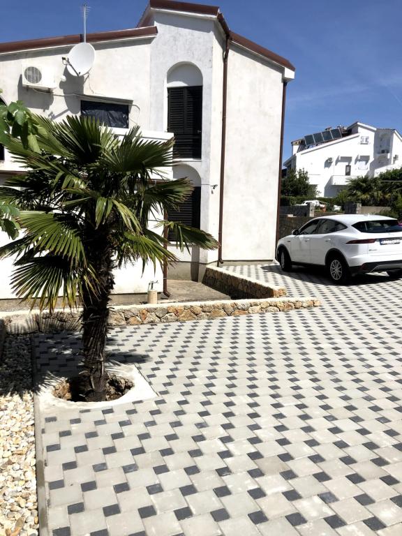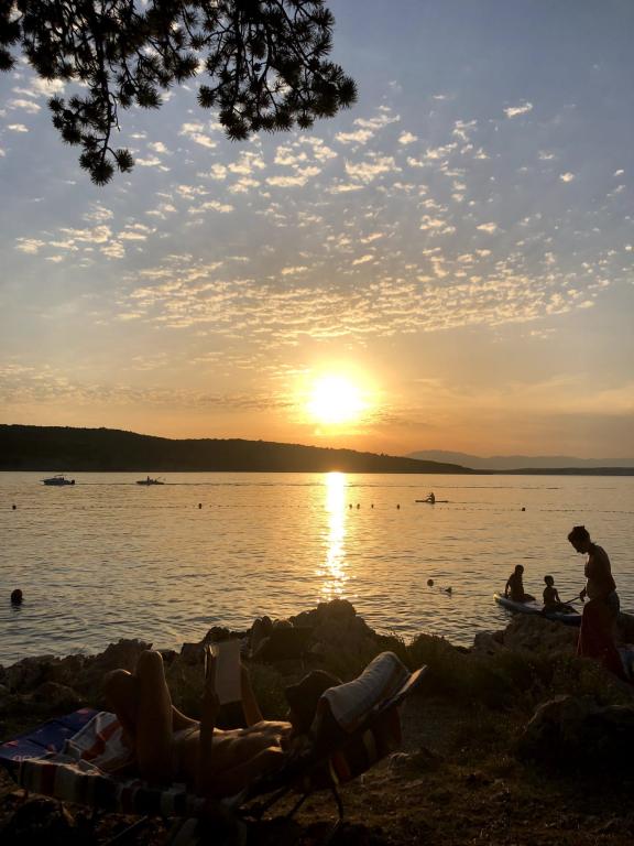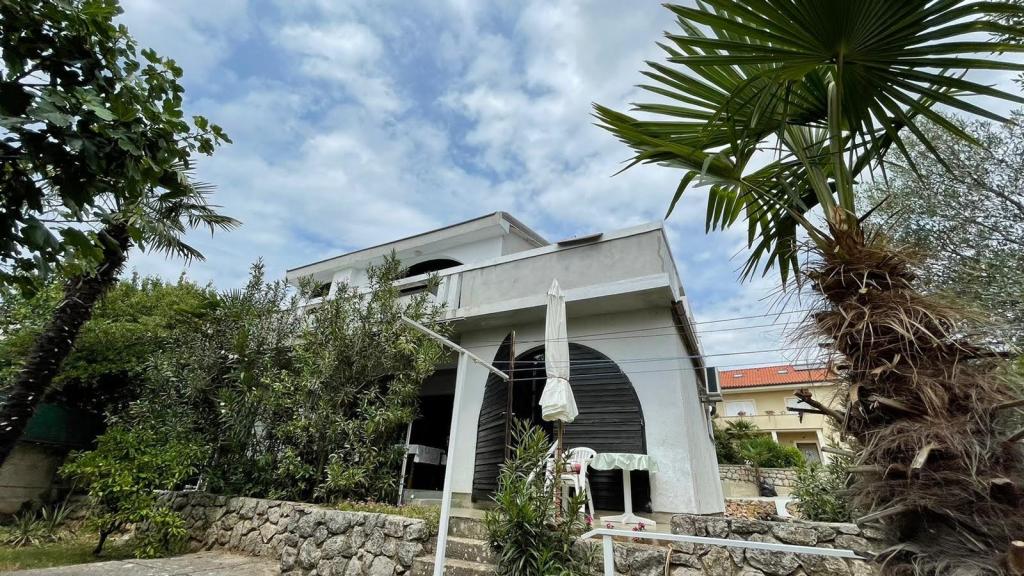 Družinska hiša z 2 velikima apartmaja 80m2 obdana z zelenjem s prijaznimi gostitelji. Miren del Krka z družinskimi hišami. Družina najema že več kot 30 let. Zgornje stanovanje vsebuje veliko teraso s čudovitim razgledom, kuhinjo in jedilnico, dnevno sobo, 2 spalnici in kopalnico. Spodnji apartma vsebuje teraso v senci, kuhinjo in jedilnico, dnevno sobo, 2 spalnici in kopalnico. Objekt se nahaja 10min hoje do morja. Bližina trgovin, restavracij in bencina je 3 min hoje. Zasebno parkirišče. .