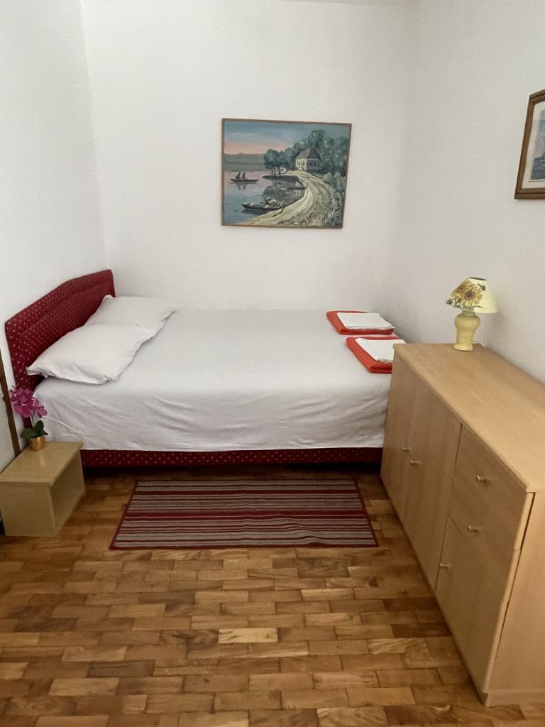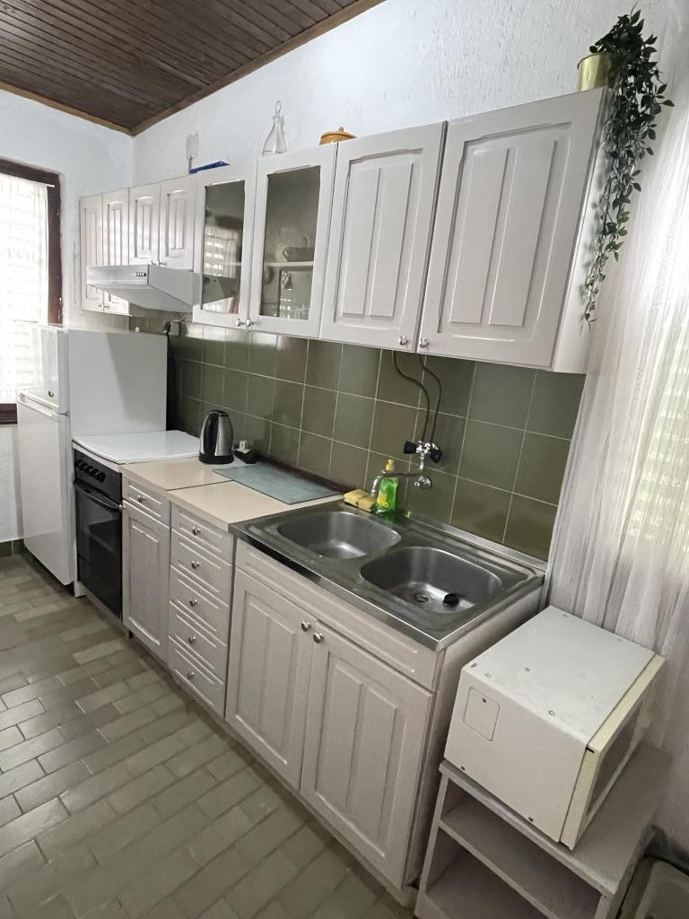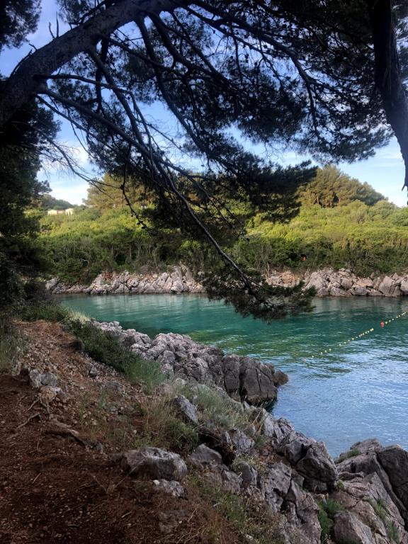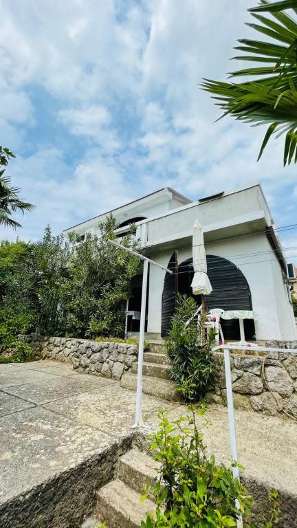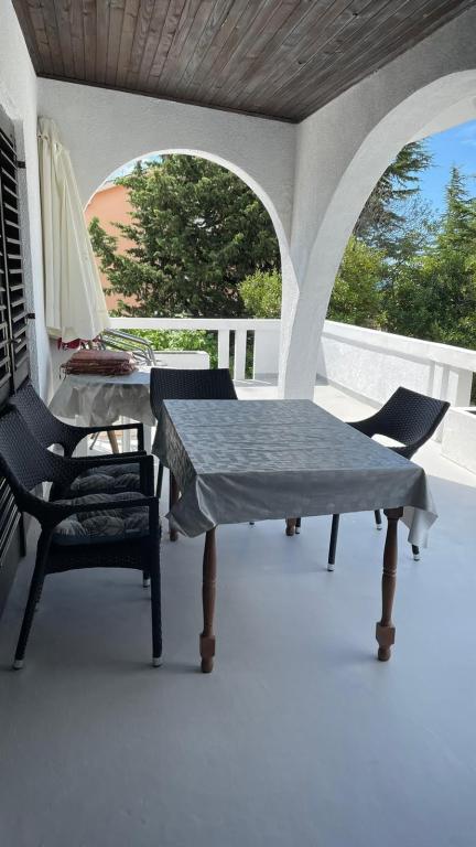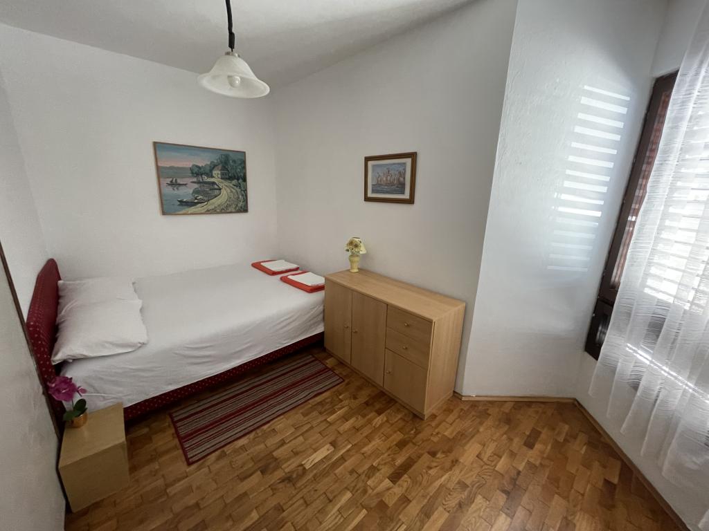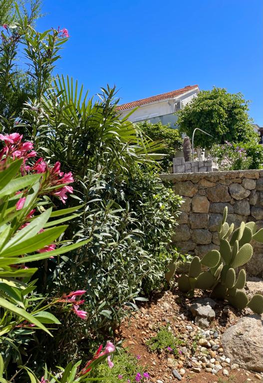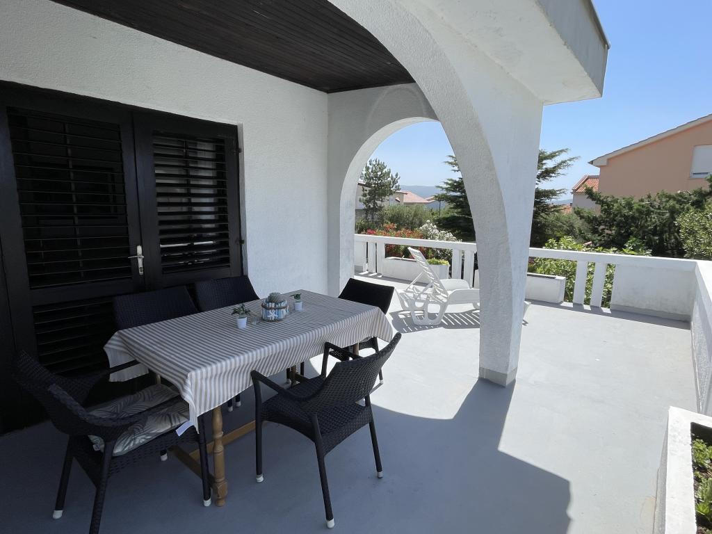 Družinska hiša z 2 velikima apartmaja 80m2 obdana z zelenjem s prijaznimi gostitelji. Miren del Krka z družinskimi hišami. Družina najema že več kot 30 let. Zgornje stanovanje vsebuje veliko teraso s čudovitim razgledom, kuhinjo in jedilnico, dnevno sobo, 2 spalnici in kopalnico. Spodnji apartma vsebuje teraso v senci, kuhinjo in jedilnico, dnevno sobo, 2 spalnici in kopalnico. Objekt se nahaja 10min hoje do morja. Bližina trgovin, restavracij in bencina je 3 min hoje. Zasebno parkirišče. .