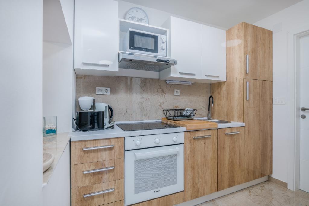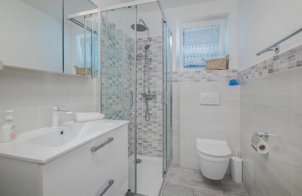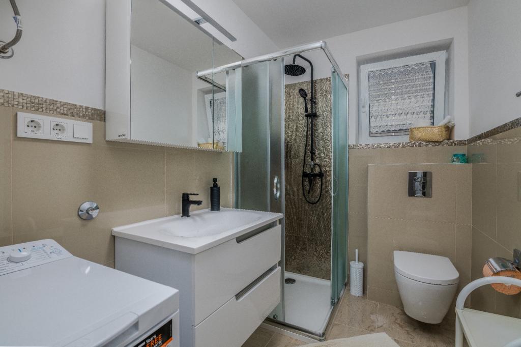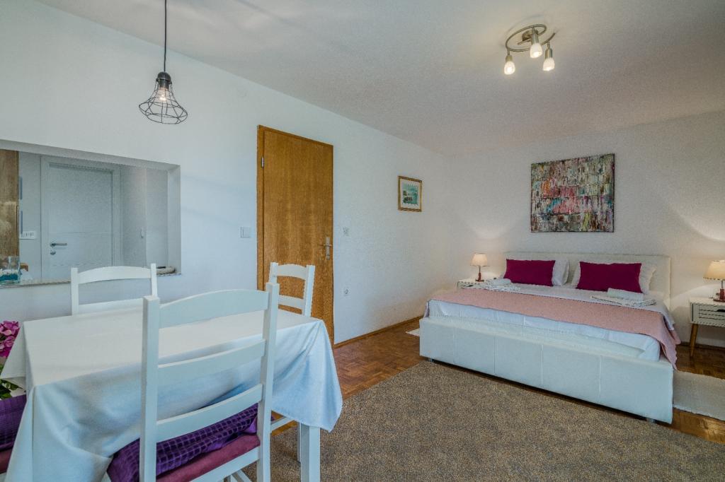 Apartmaji Nada se nahajajo na atraktivni lokaciji v mestu Krk, le 100 metrov od morja in 10 minut hoje do centra mesta. Apartmaji imajo pogled na morje, obdani so z zelenjem in prostornim dvoriščem. Oddamo 3 enote. Apartma 1, kategoriziran s 4 zvezdicami, velikosti 55 m2, obsega dve ločeni spalnici, vsaka z balkonom in kopalnico z WC in tušem, ležišča 160x200, ločena kuhinja z dnevno sobo. Apartmaja 2 in 3 sta kategorije 3 zvezdice, velika 46 m2, imata eno ločeno spalnico z ležiščem 160x200 in večji dnevni prostor z ležiščem 160x200. Vsi apartmaji so moderno urejeni in imajo pralni stroj, pomivalni stroj, LED TV, pečico, mikrovalovno pečico, toaster, Nespresso aparat... Vsi prostori v apartmaju so klimatizirani. Priljubljeni plaži Dražica in Punta Di Galetto se nahajata v bližini apartmaja. Zgodovinske znamenitosti so oddaljene 500 metrov od apartmaja, npr. Trdnjava Krk. Najbližje letališče Rijeka je oddaljeno 25 km.
