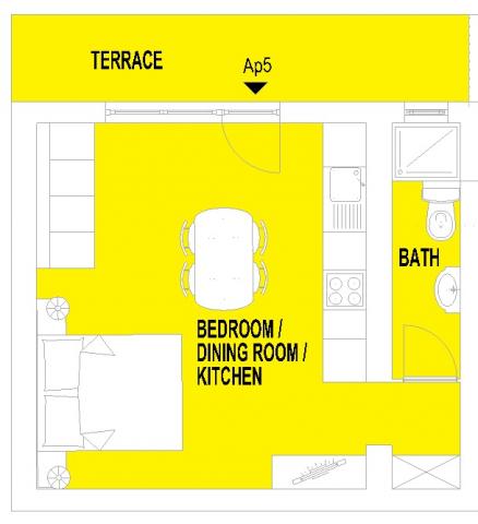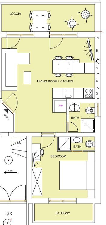Apartma za dve osebi, možnost dveh dodatnih ležišč (48 m2)