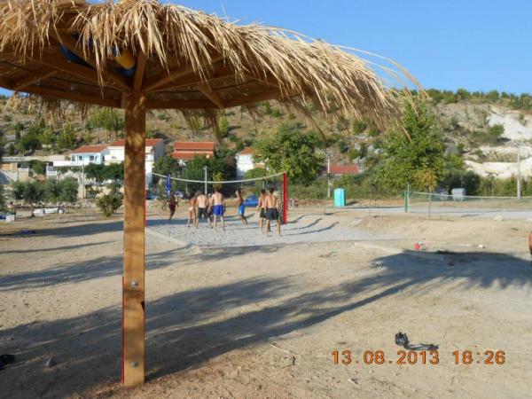 Na plaži so objekti za: nogomet, tenis, bagminton, otroške gugalnice, balinišče. Sama plaža ima rahel vstop v morje (za otroke in slabše plavalce) in je prekrita z gramozom. Obstaja tudi del skalnate plaže z manjšo in večjo globino za potapljanje in kjer so stopnice za izhod iz morja. Plaža ima tudi naravni del s kamnito obalo, kjer sta možna tudi kopanje in sončenje. Caffebar neposredno na plaži. 1000 m stran je izliv Zrmanje, kjer je možen rafting. Čudovite jame Cerovec (17 km) s stalaktiti. Ogled Zadra s številnimi muzeji in starinami, morskimi orglami (kot redkost na svetu) in pozdravom soncu (30 km). Plitviška jezera so oddaljena približno 70 km. Nacionalni park Paklenica, slapovi Krke. .