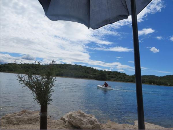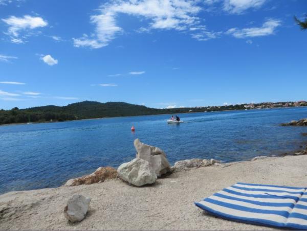 Okolica hiše lepo, za najem ležalnikov, plavanje krogov. Okoli hiše, ki sedi, viseče gugalnice, namestitev ob morju. Ampak hiša se nahaja v kanalu, vsak dan pa 1000 ladij, hodi blizu, tako da ne morete nikamor več kopati, od jutra do večera od velikih valov, mrzlega morja in mraza, malo dlje za cerkvijo je kamnita plaža, boljša vstop v morje, ampak neverjetno nered. Nastanitev ustreza fotografijam, vendar ni nikjer napisana, da imate skupno teraso z drugimi ljudmi, s katerimi si ogledate krožnike.