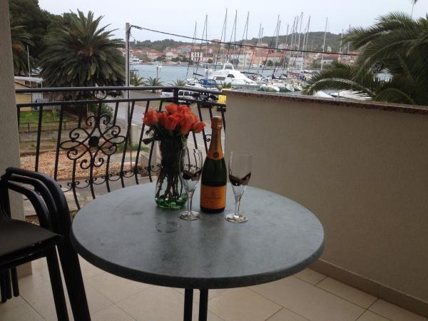 Nova stanovanja v Kukljica, ki se nahaja v marini, na sprehajališča Lungo-mare. 5 minut hoje do centra mesta in 5 minut hoje do plaže, Zelena Punta. Objekt ima 6 apartmajev, 2 spalnici in 4-sobno. Vsak apartma ima ters s pogledom na marino Kukljica. Apartmaji so opremljeni, vodil tv, satelit, klimatska naprava, mikrovalovna pečica, pomivalni stroj, aparat za kavo, itd .. Z odlično restavracijo tako da, ko se lahko rezervacije bogatim zahtevo za zajtrk in večerjo. (HB)