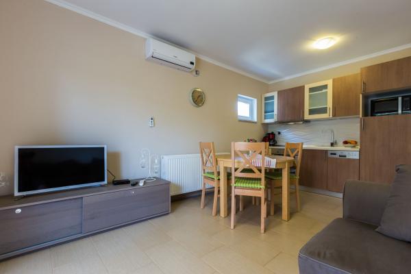 Turistična taksa je vključena v ceno.Popolna stanovanja. Zelo čisto. Gospa je poskrbela za čiste brisače in posteljnino (zamenjava po nekaj dneh). Popolna lokacija, več različnih plaž v 2-5 minutah. Čudovit pogled na marino. Bazen je čist in urejen, ponoči osvetljen. Priporočam!