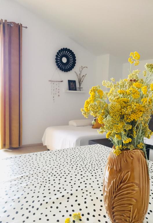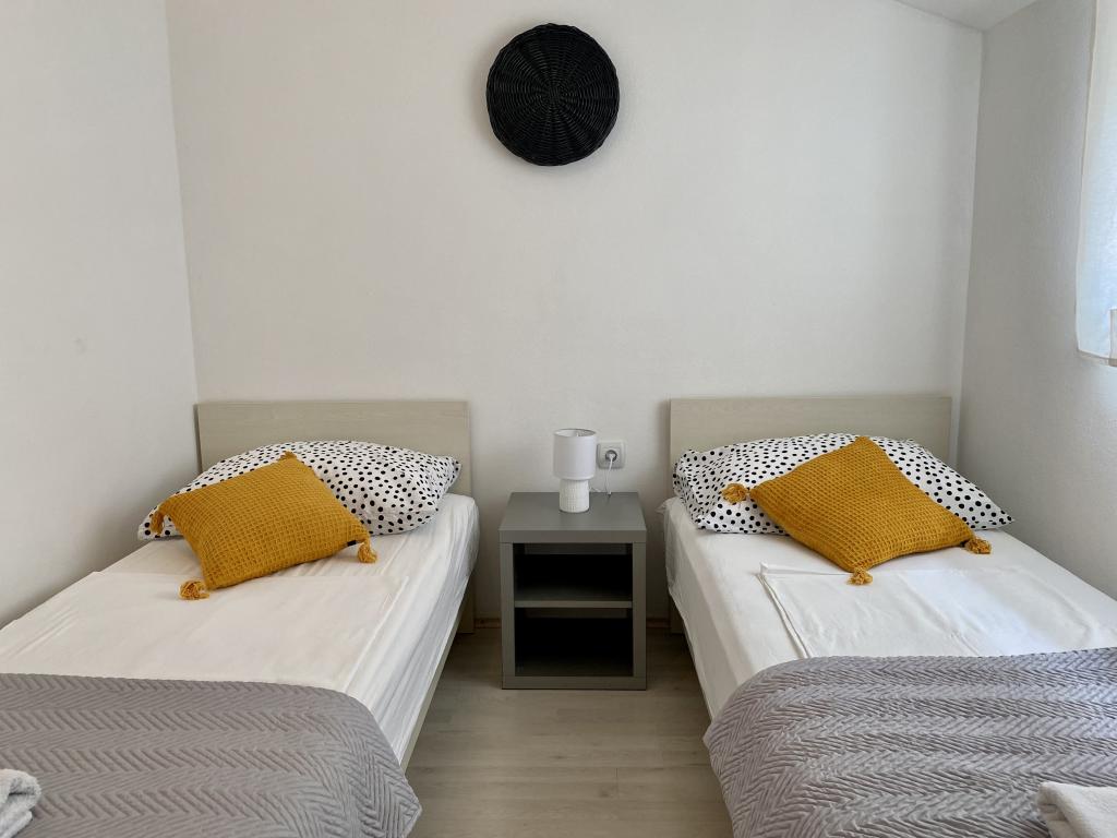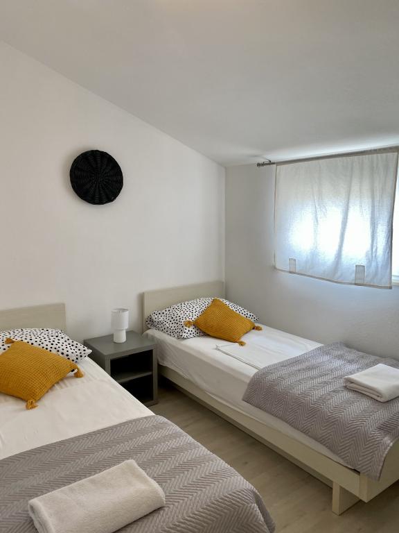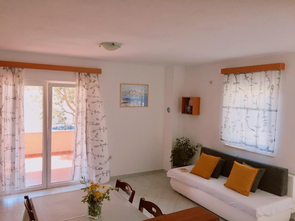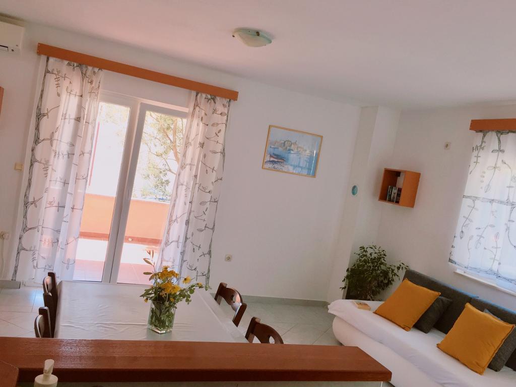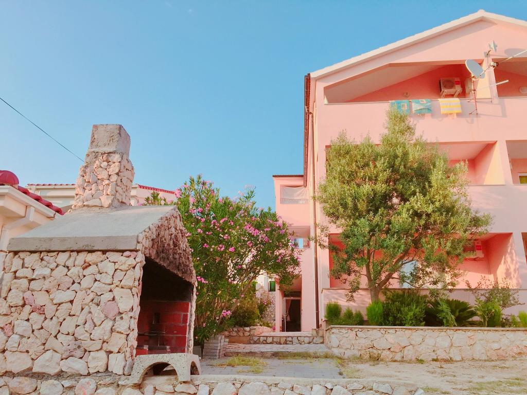 Popolnoma opremljeni prenovljeni apartmaji, 3. red od morja (100 m od plaže) in sprehajališča ob morju. Vsi apartmaji so popolnoma opremljeni, klimatizirani, imajo teraso s pogledom na morje, parkirišče je zavarovano in brezplačno za hišo ali pred hišo, WiFi je brezplačen. Hiša se nahaja 3 km od centra Novalje. V bližini je restavracija in trgovina. Idealno za vse starostne skupine, od pare z otroki do mladih, ki iščejo zabavo.