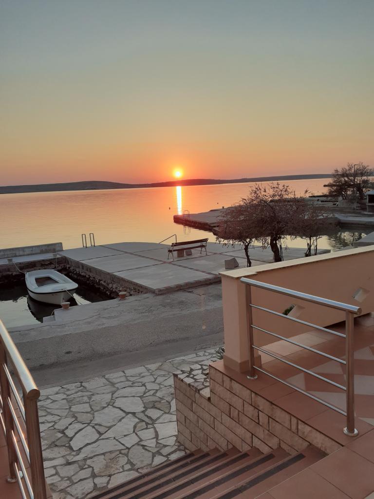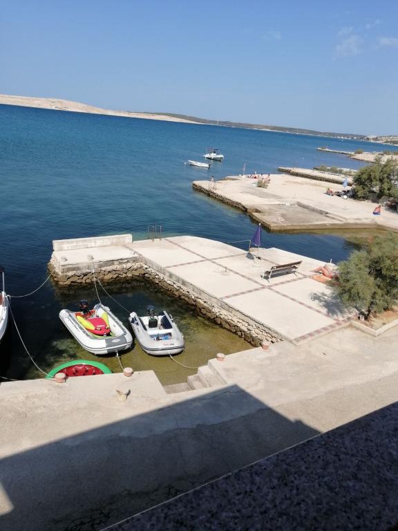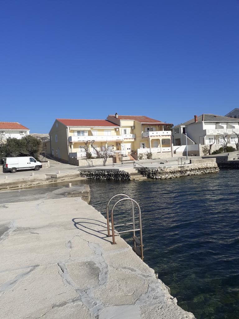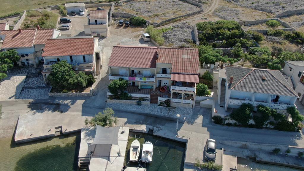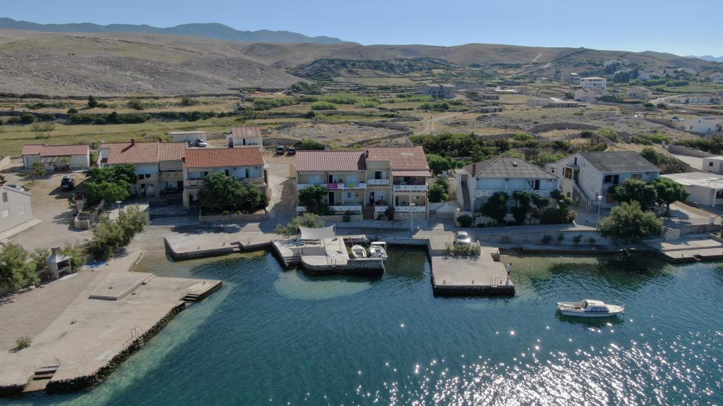 Apartmaji Katica se nahajajo v prvi vrsti do morja, na mirni lokaciji, idealni za družinski turizem. V vasi je trgovina, pekarna in več restavracij, od mesta Novalja pa je oddaljena 6 kilometrov. Apartmaji imajo velike terase s katerih se ponuja čudovit pogled na Paški zaliv in sončni zahod.