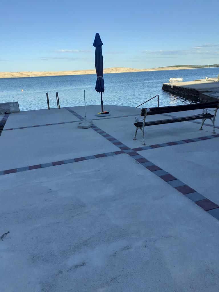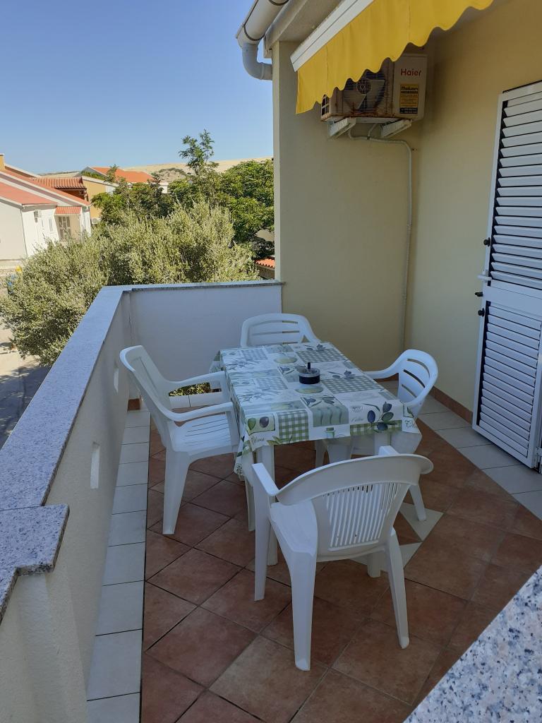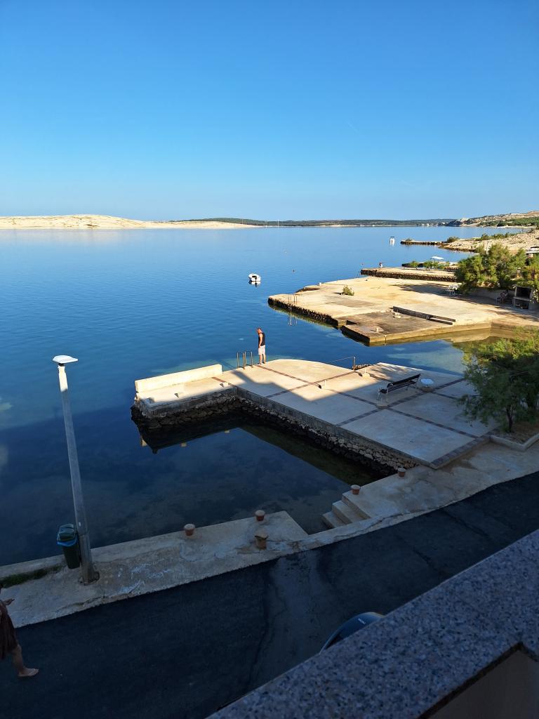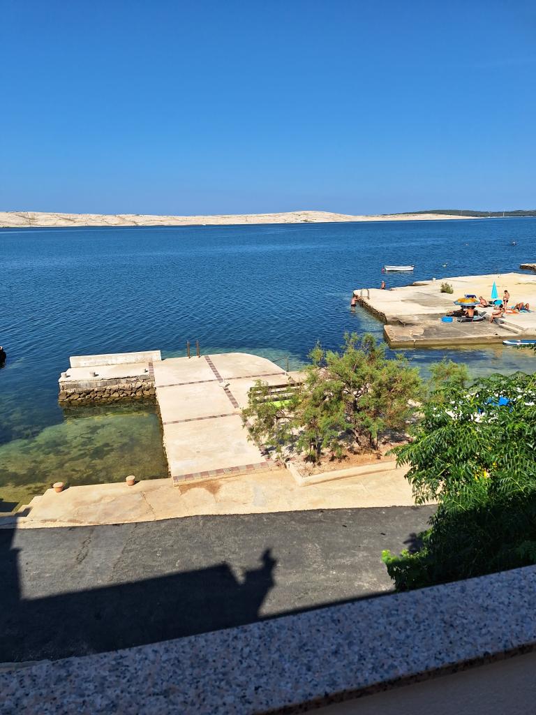 Apartmaji Katica se nahajajo v prvi vrsti do morja, na mirni lokaciji, idealni za družinski turizem. V vasi je trgovina, pekarna in več restavracij, od mesta Novalja pa je oddaljena 6 kilometrov. Apartmaji imajo velike terase s katerih se ponuja čudovit pogled na Paški zaliv in sončni zahod.