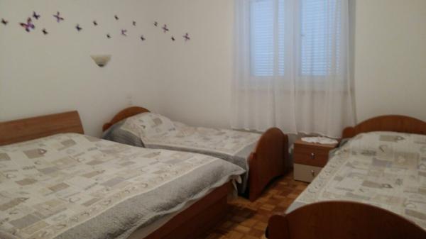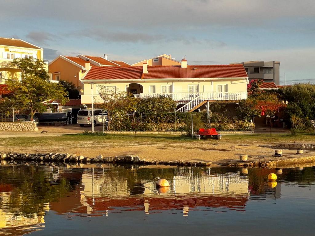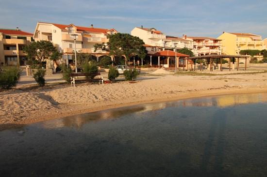 Družinska hiša s 6 apartmaji na mirni lokaciji neposredno na plaži, apartmaji so popolnoma opremljeni, imajo parkirišče pred hišo, opremo za peko na žaru.