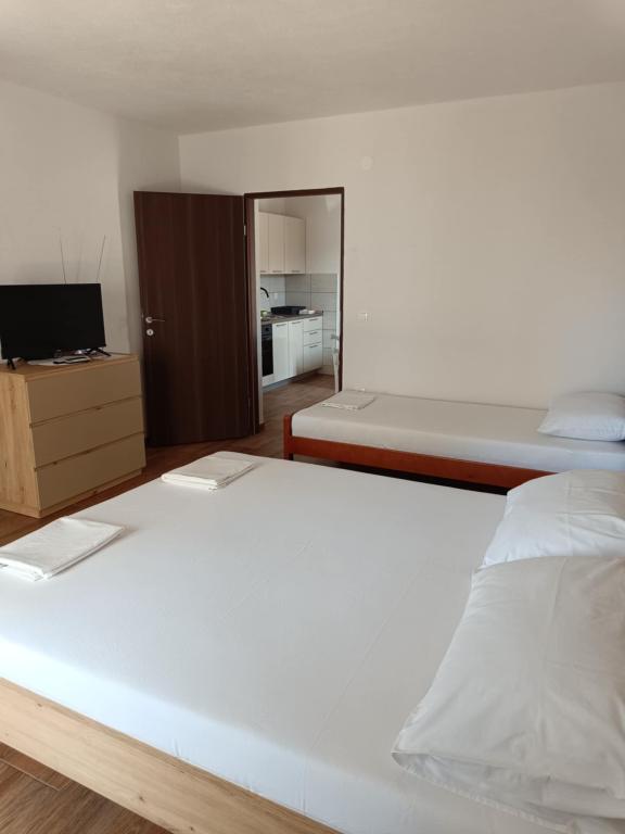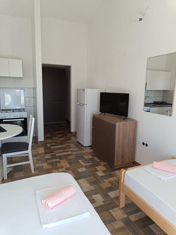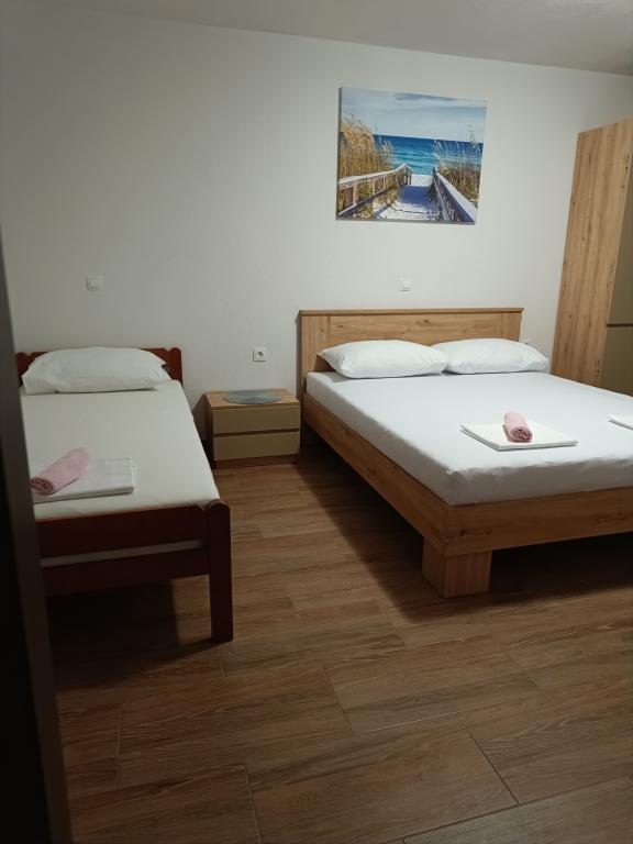 Apartmaji Leonard Nahajamo se v majhnem in mirnem mestu Kustići. Nudimo nove in popolnoma opremljene apartmaje s parkiriščem! Vsak apartma ima klimatsko napravo, Wi-Fi, posteljnino, popolnoma opremljeno kuhinjo in teraso, trgovine, restavracije in pekarna pa so oddaljene 6 km! Imamo tudi priveze za čolne 20 metrov stran od apartmaja!
