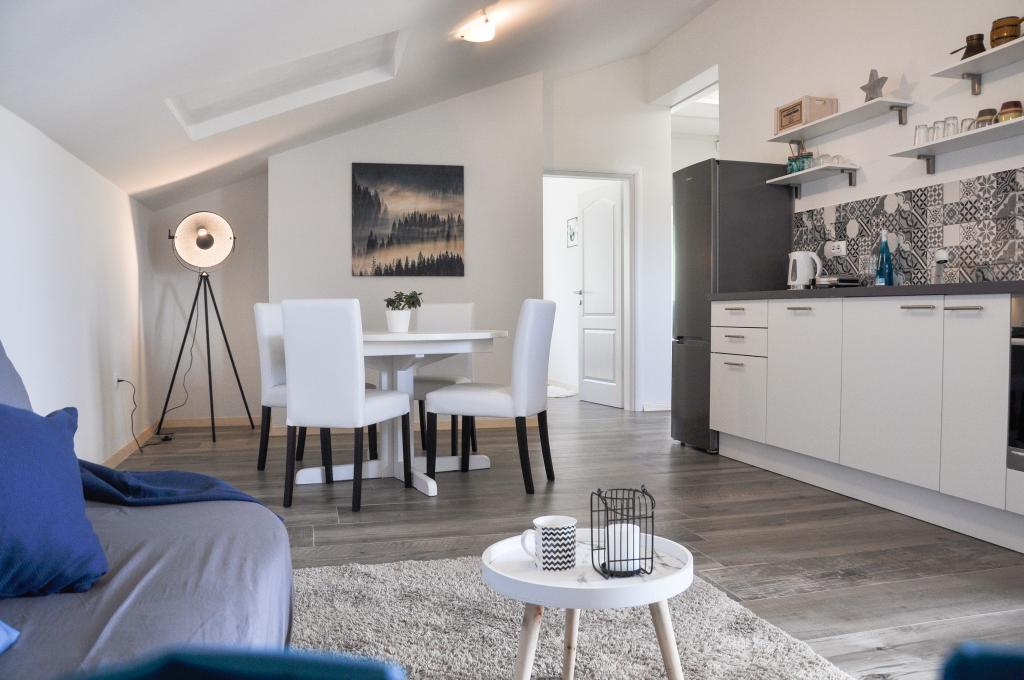 Apartmaji Carnizza ponujajo veliko dvorišče z brezplačnim in pokritim parkiriščem ter otroško igrišče za nogomet, odbojko in gugalnice. Ponujajo tudi prostor za sprehod po hiši. Hiša se nahaja v mirnem okolju, pogled pa je usmerjen na morje in Velebit.