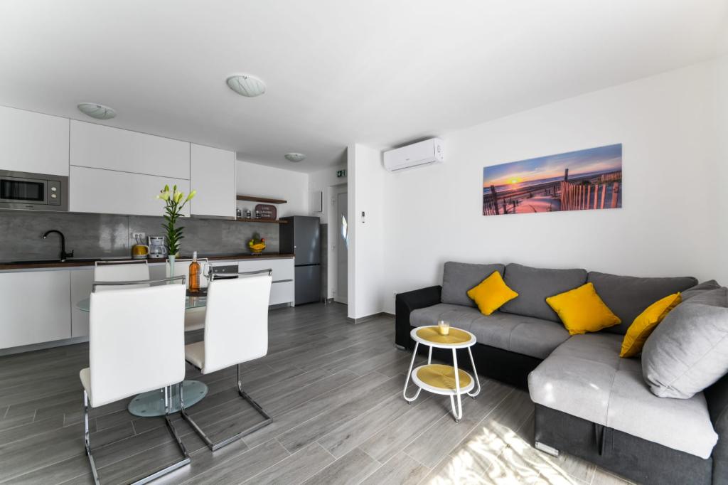 Udobne postelje! To nam je zelo pomembno. Apartma je izjemno čist in opremljen. Ima vse, kar potrebujete, in še več. Prostoren z veliko teraso. Zelo lepo. Marina in Stipe sta izjemno ustrežljiva in prijazna gostitelja. Hvala iz srca.