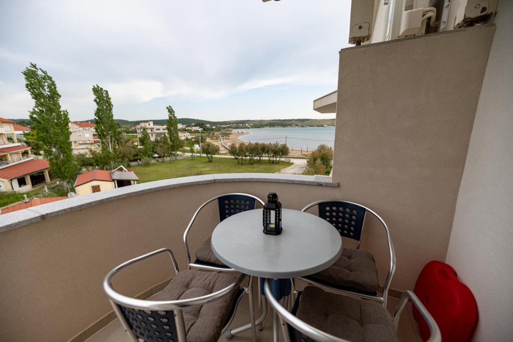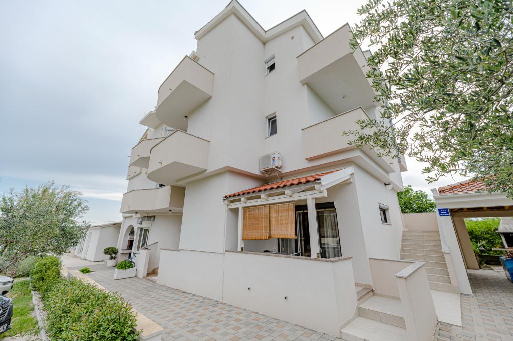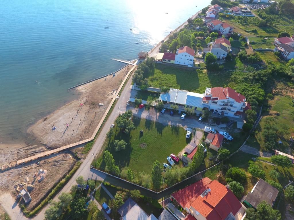 Novo opremljeni apartmaji se nahajajo v prvi vrsti do morja na čudoviti peščeni plaži. Objekt ima veliko dvorišče z lastnimi parkirnimi mesti in otroškimi pripomočki (gugalnice, vrtiljak...) V sklopu objekta je tudi Caffe bar s hitro prehrano. Za bivanje krajše od 5 dni je cena višja za 30%.