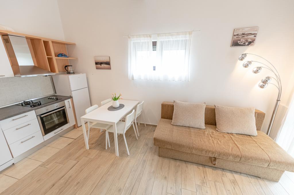 Apartma dobro opremljen, zelo čist, lepo urejena okolica. Lastnika zelo prijazna, ustrežljiva. V gostilni, ki je v sklopu apartmajev, odlične, zelo okusne pizze. Plaža tik pred apartmaji, zelo primerna za majhne otroke. Zelo mirna vas za miren, sproščen dopust. Odlično, vse pohvale.