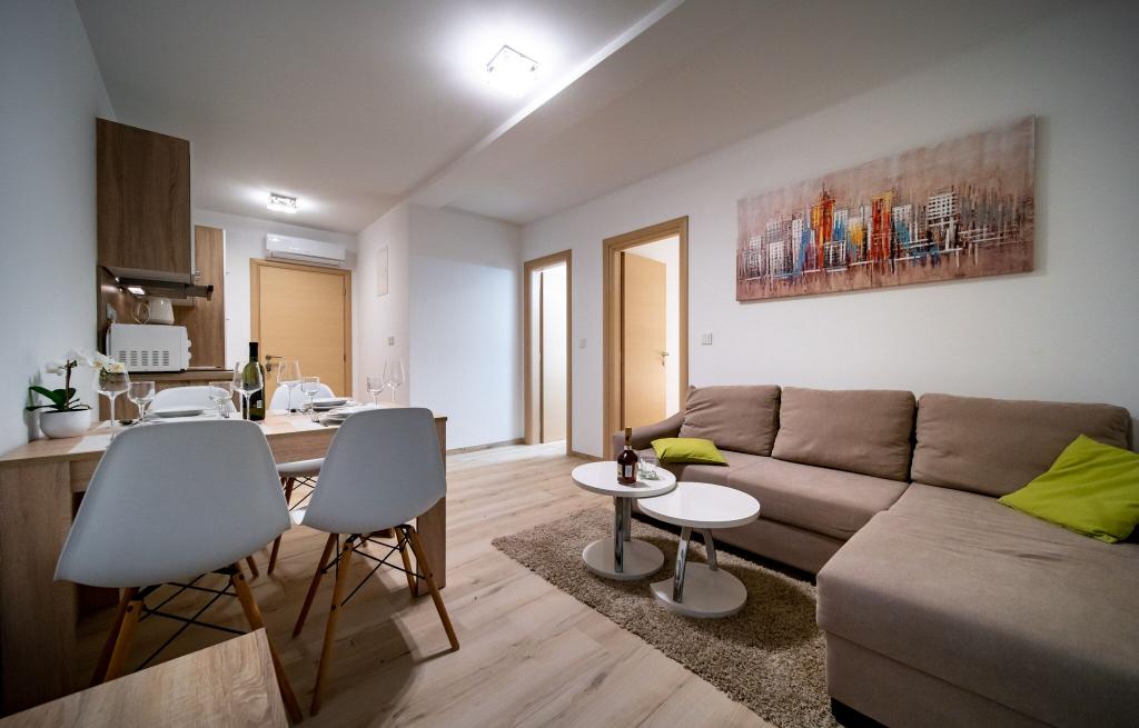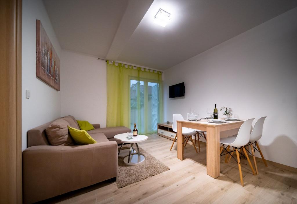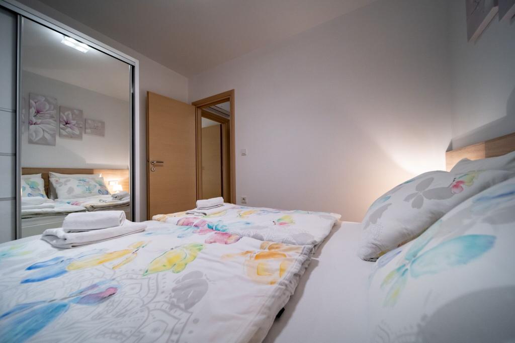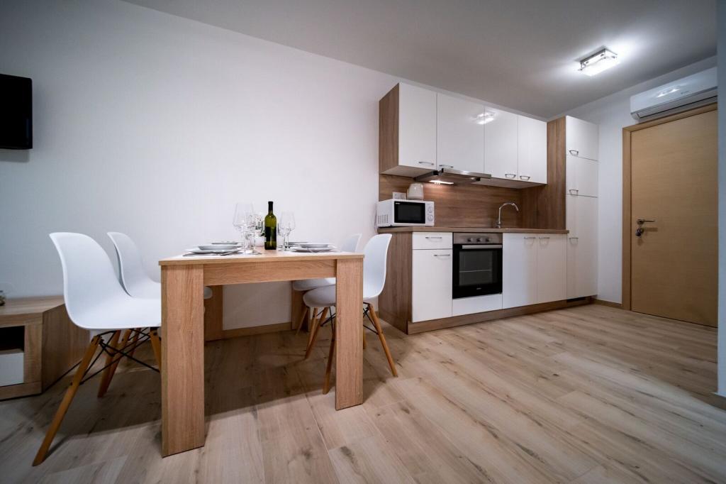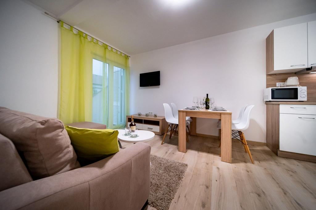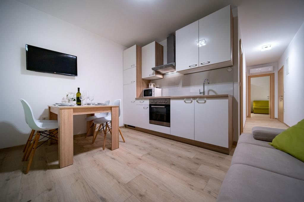 Sodobno in čisto stanovanje le nekaj minut od rajske plaže. Bili smo junija in smo najeli enosobno stanovanje. Bilo je bolje, kot smo pričakovali. Postelja je bila udobna, tudi kavč za našega otroka je bil ok. Naš dojenček je spal na otroški postelji (brezplačno), kar je bilo res super. Balkon je bil velik in super zaradi otrok - na njem so se igrali, ko nas ni bilo na plaži. Sandra in njen mož sta prijazna in vedno pripravljena pomagati, obvestita nas o vsem kar potrebujemo. Toplo priporočamo te apartmaje in še se bomo vrnili! Irene