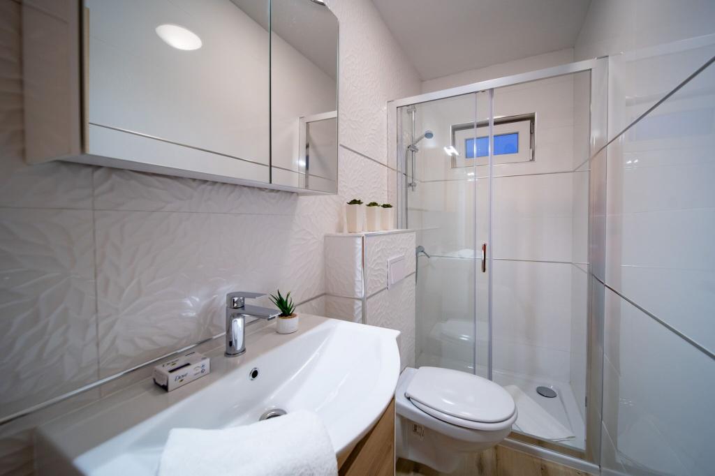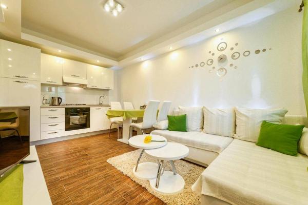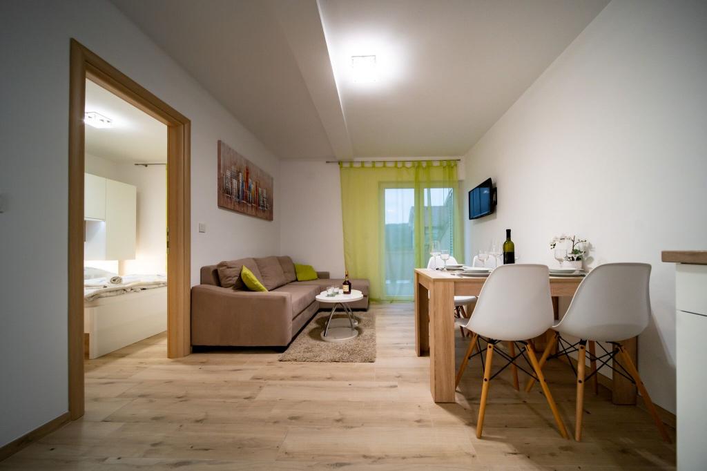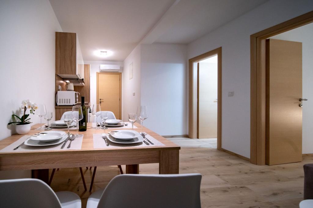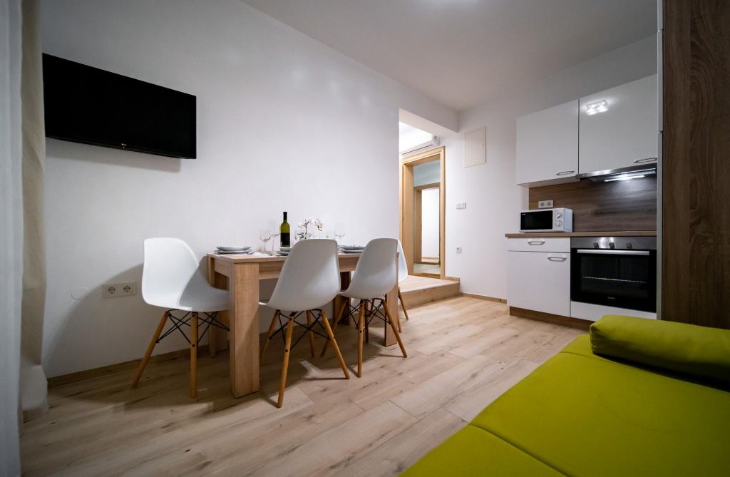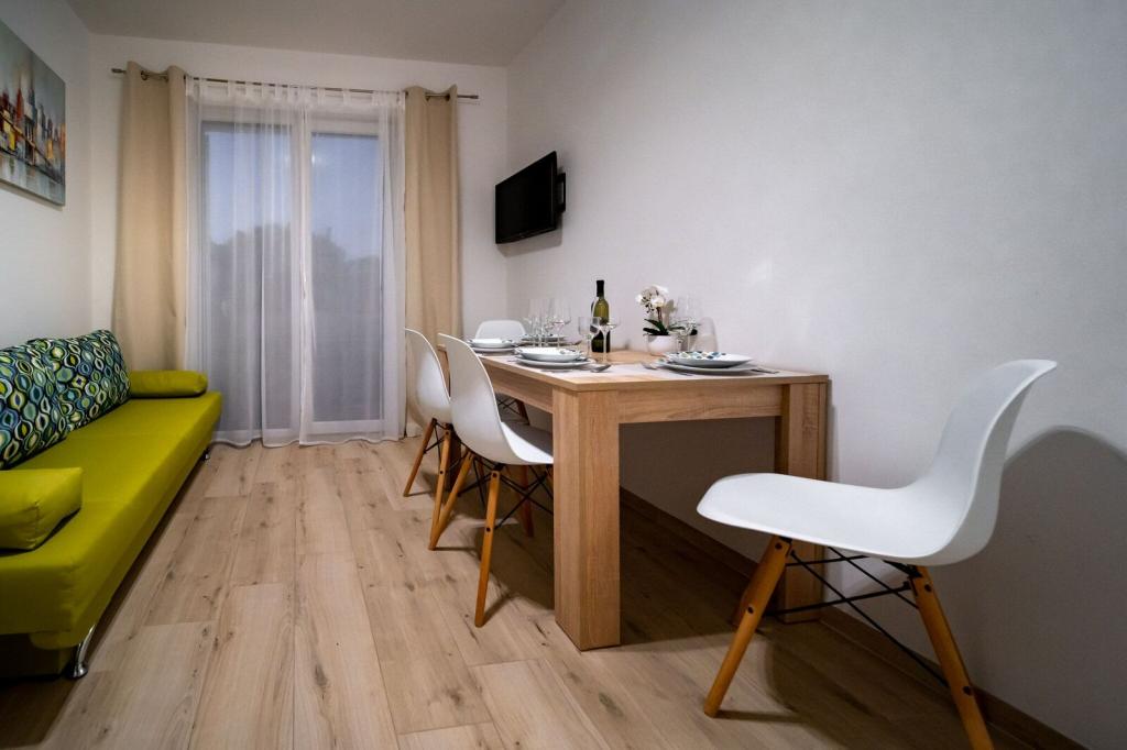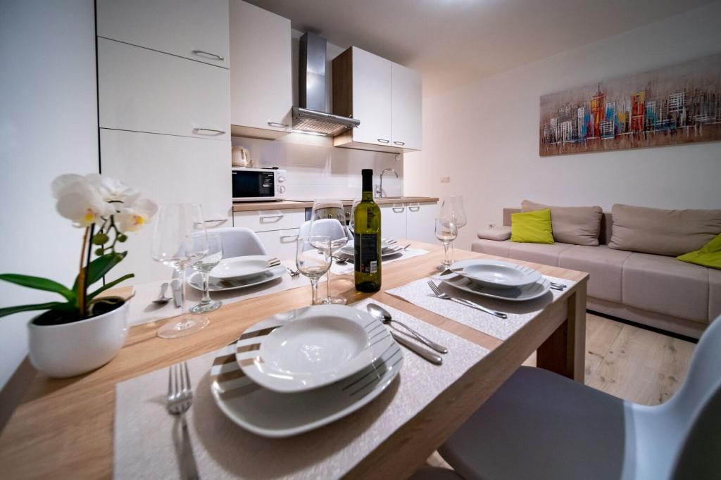 Sodobno in čisto stanovanje le nekaj minut od rajske plaže. Bili smo junija in smo najeli enosobno stanovanje. Bilo je bolje, kot smo pričakovali. Postelja je bila udobna, tudi kavč za našega otroka je bil ok. Naš dojenček je spal na otroški postelji (brezplačno), kar je bilo res super. Balkon je bil velik in super zaradi otrok - na njem so se igrali, ko nas ni bilo na plaži. Sandra in njen mož sta prijazna in vedno pripravljena pomagati, obvestita nas o vsem kar potrebujemo. Toplo priporočamo te apartmaje in še se bomo vrnili! Irene
