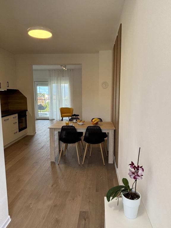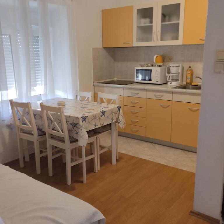 Spoštovani gostje. Ponujamo vam 6 dobro opremljenih apartmajev, 600 m od Rajske plaže. Apartmaji imajo pogled na morje, parkirišče in otroško igrišče z velikim vrtom. Veselimo se vašega prihoda. Apartmaji Gero