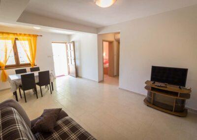 Naši apartmaji se nahajajo v mirni soseski, zato so idealni za brezskrbne počitnice. Plaža je le 200 m od apartmaja. V neposredni bližini so trgovine, restavracije, pekarna... 1 apartma ima pogled na morje. Dali smo v uporabo našo vrtno paviljon z žarom, s katerega se razprostira pogled na plažo Mel. Vsak apartma ima zagotovljeno parkirno mesto.