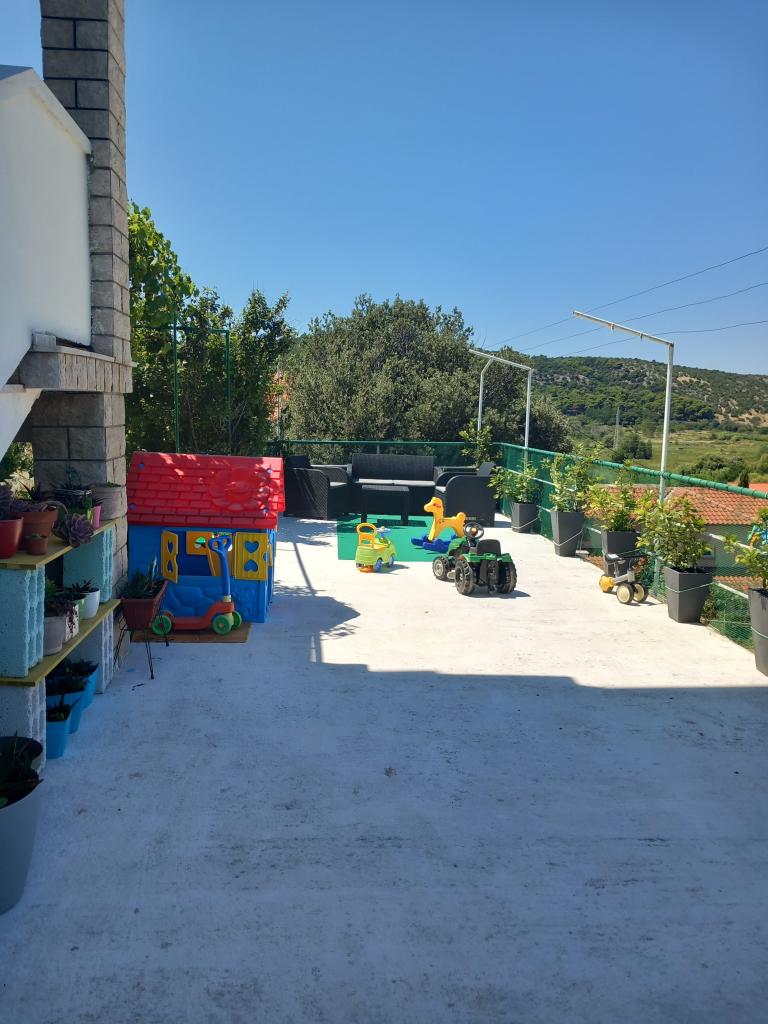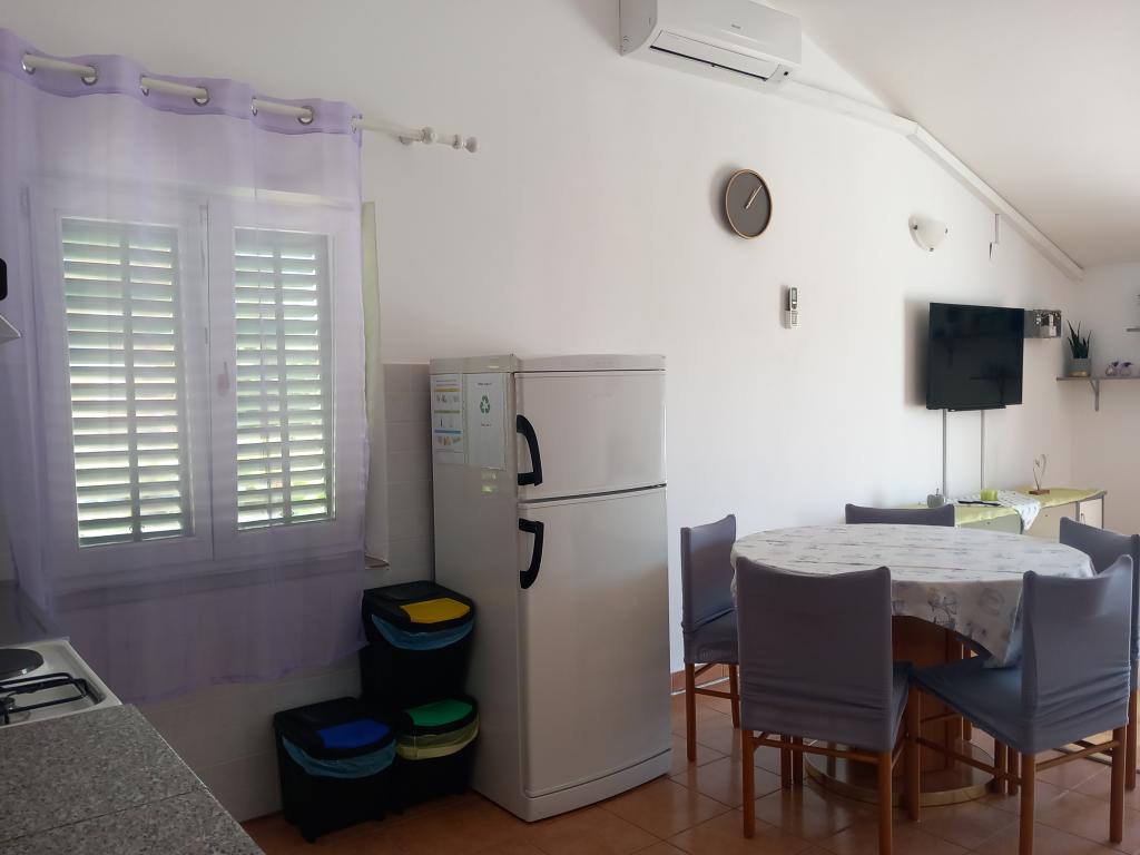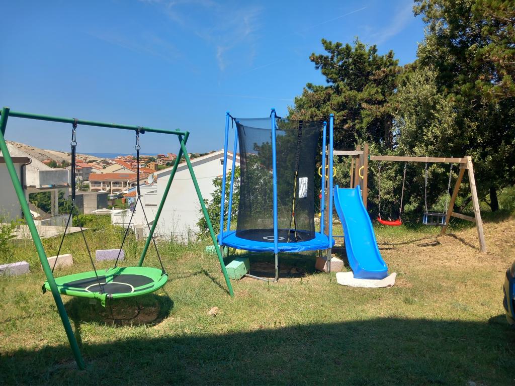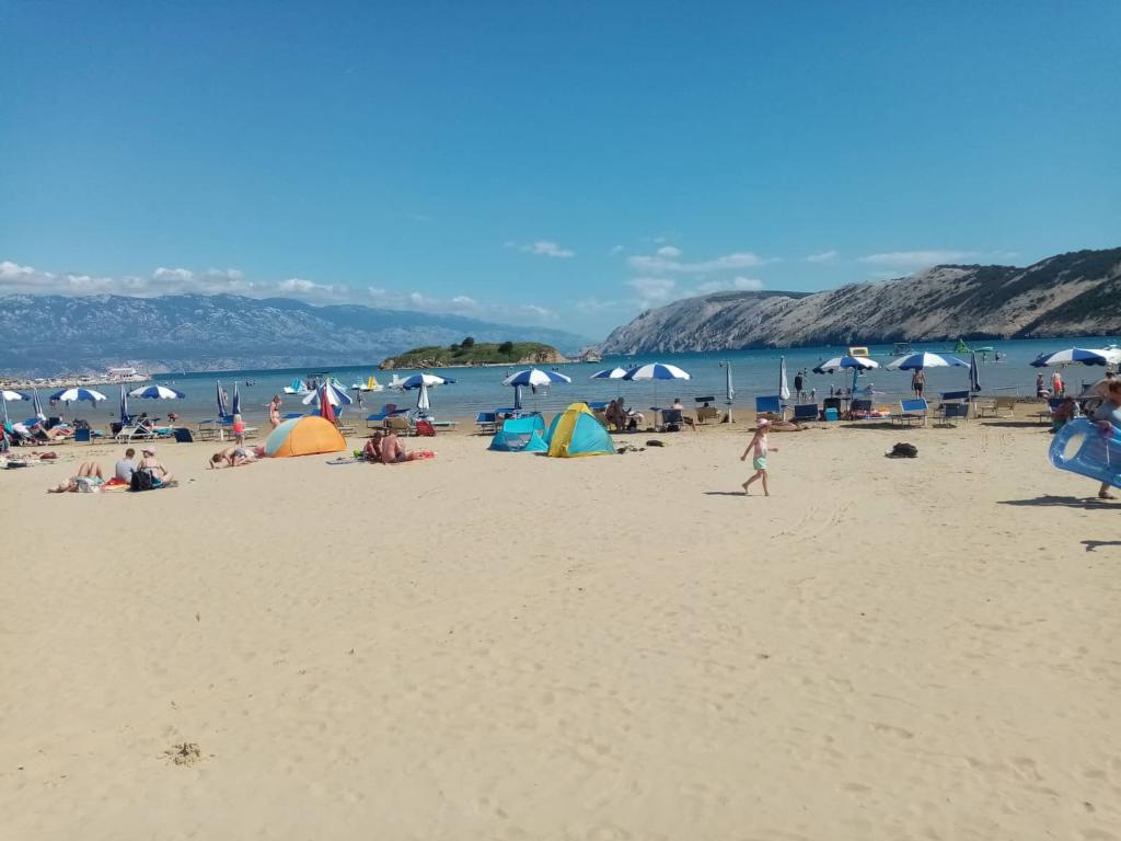 Apartmaji Mira se nahajajo v družinski hiši in ponujajo namestitev za do 15 oseb v 3 apartmajih. Nahajamo se v mirni soseski, skoraj na samem koncu slepe ulice, v bližini pa so vse bistvene ugodnosti (trgovina, pekarna, bankomat, lekarna, restavracije, pošta, kavarne...), manj kot 10 minut hoje stran. Najbolj znana plaža na Rabu, Rajska plaža, dolga skoraj 2 km in odlična za otroke, je najbližja plaža in do nje pridete v 10 minutah hoje. Imamo brezplačno parkirišče ob hiši in 2 otroški igrišči. Apartmaji imajo na voljo pralni stroj in prostor za shranjevanje v pritličju (za vozičke ali kolesa). Vsi apartmaji imajo pametne televizorje z neomejenim Netflixom :)