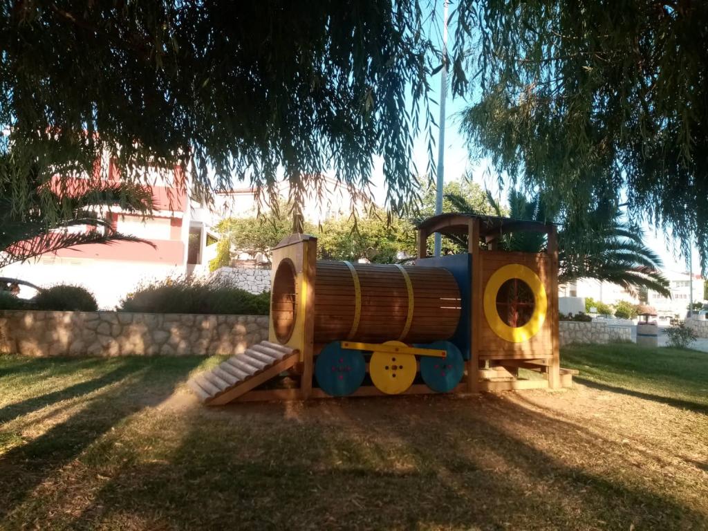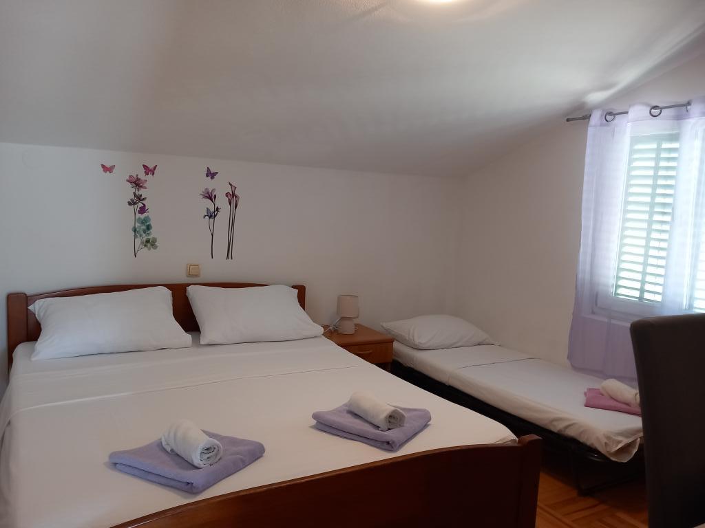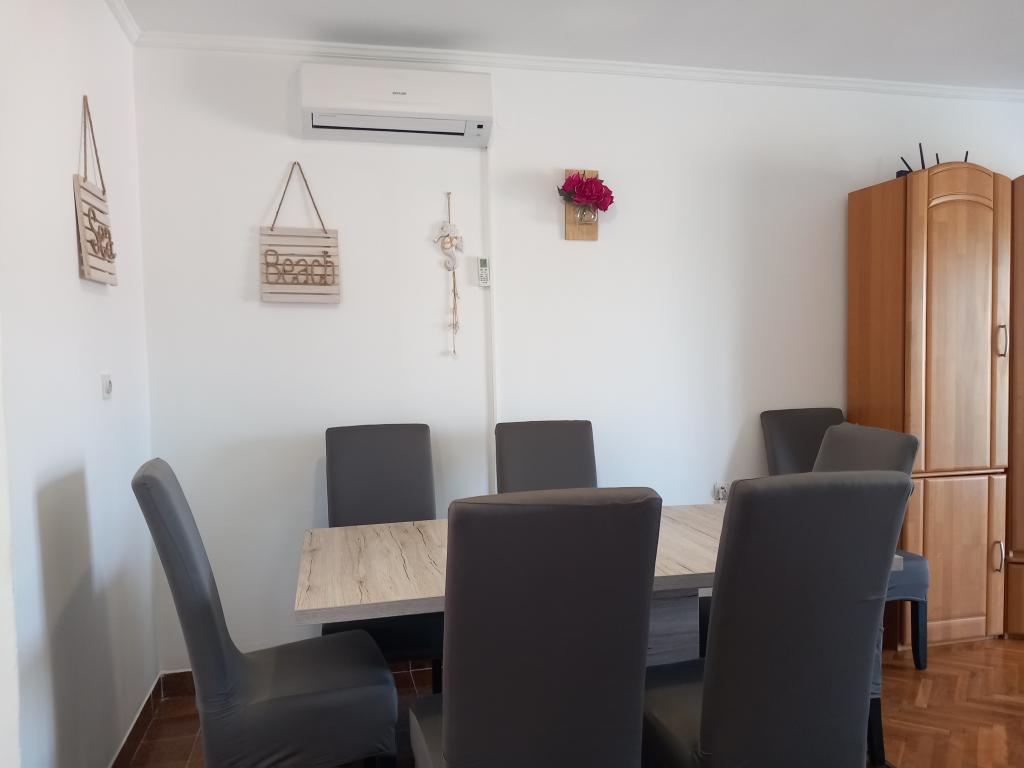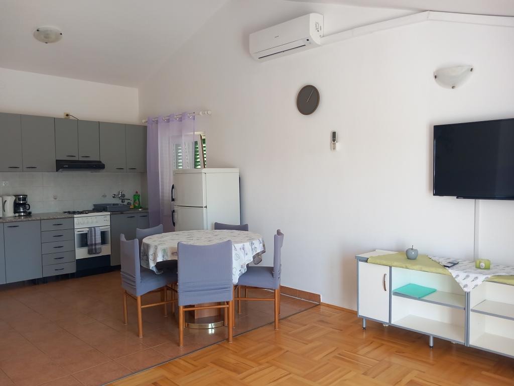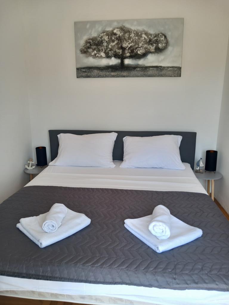 Apartmaji Mira se nahajajo v družinski hiši in ponujajo namestitev za do 15 oseb v 3 apartmajih. Nahajamo se v mirni soseski, skoraj na samem koncu slepe ulice, v bližini pa so vse bistvene ugodnosti (trgovina, pekarna, bankomat, lekarna, restavracije, pošta, kavarne...), manj kot 10 minut hoje stran. Najbolj znana plaža na Rabu, Rajska plaža, dolga skoraj 2 km in odlična za otroke, je najbližja plaža in do nje pridete v 10 minutah hoje. Imamo brezplačno parkirišče ob hiši in 2 otroški igrišči. Apartmaji imajo na voljo pralni stroj in prostor za shranjevanje v pritličju (za vozičke ali kolesa). Vsi apartmaji imajo pametne televizorje z neomejenim Netflixom :)
