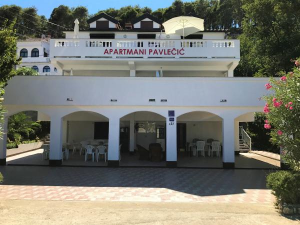 Apartmaji Pavlečić se nahajajo v Loparju na otoku Rabu. Apartmaji so sestavljeni iz 6 ločenih stanovanj. 4 apartmaji so za 3 osebe, 2 apartmaja pa za 4 osebe. Vsak apartma ima ločen vhod, kuhinjo, kopalnico, WC-tuš, 1 ali 2 spalnici, SAT TV, teraso z mizo in stoli. V pritličju je velika terasa z mizami in stoli ter žarom, ki ga lahko uporabljajo vsi gostje. Oddaljenost od plaže je le 20 m, zaradi plitvega morja in peščene plaže je idealna za majhne otroke. Trgovine, restavracije, pošta so oddaljene 400 m.
